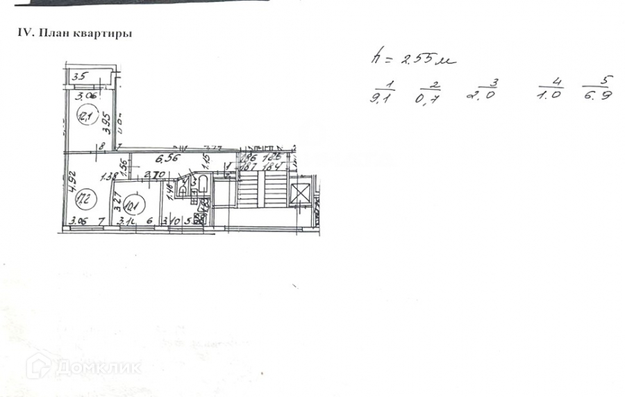 Высота потолков 2.55 м