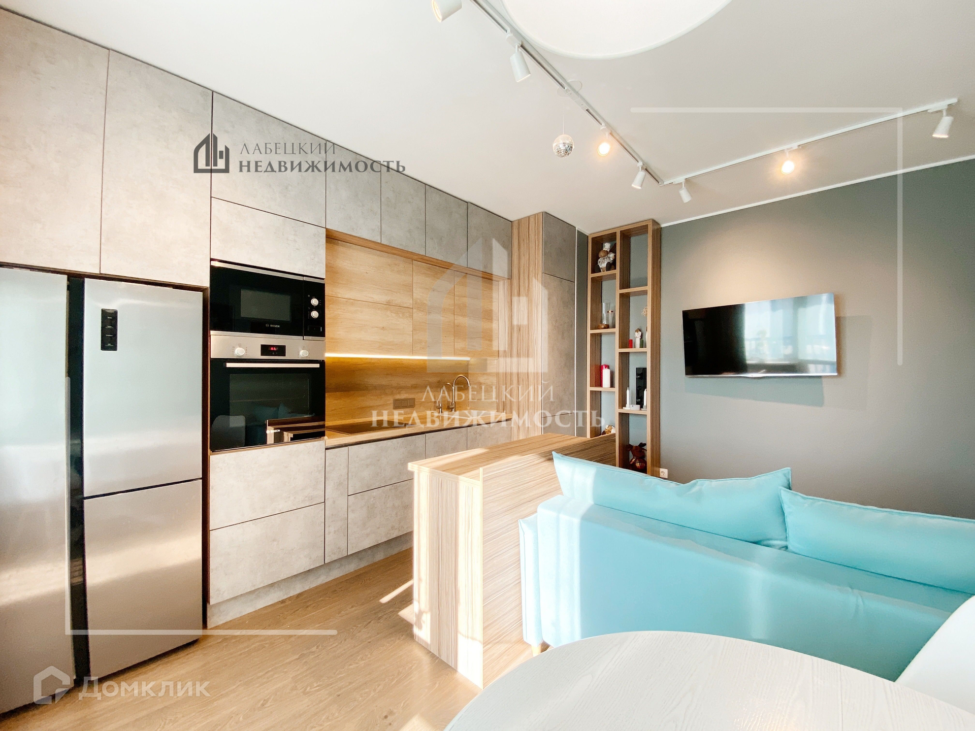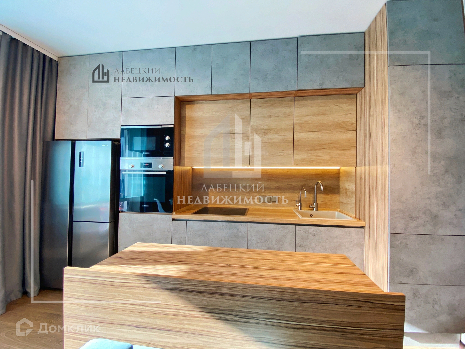КУХНЯ полностью укомплектована ВСТРОЕННОЙ ТЕХНИКОЙ (электрическая плита, духовая печь, микроволновая печь, вытяжка), двухдверный холодильник