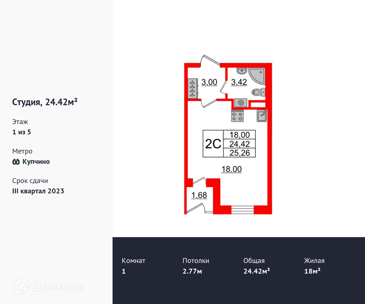 Продается студия в ЖК Зеленый квартал на Пулковских высотах площадью 24.2 м2 (жилая площадь – 18 м2). Квартира расположена рядом с метро Московская. Расстояние до метро 20 Мин.на транспорте. Площадь прихожей 3 м2. Высота потолка 2.77 м. Лоджия. Чистовая отделка.