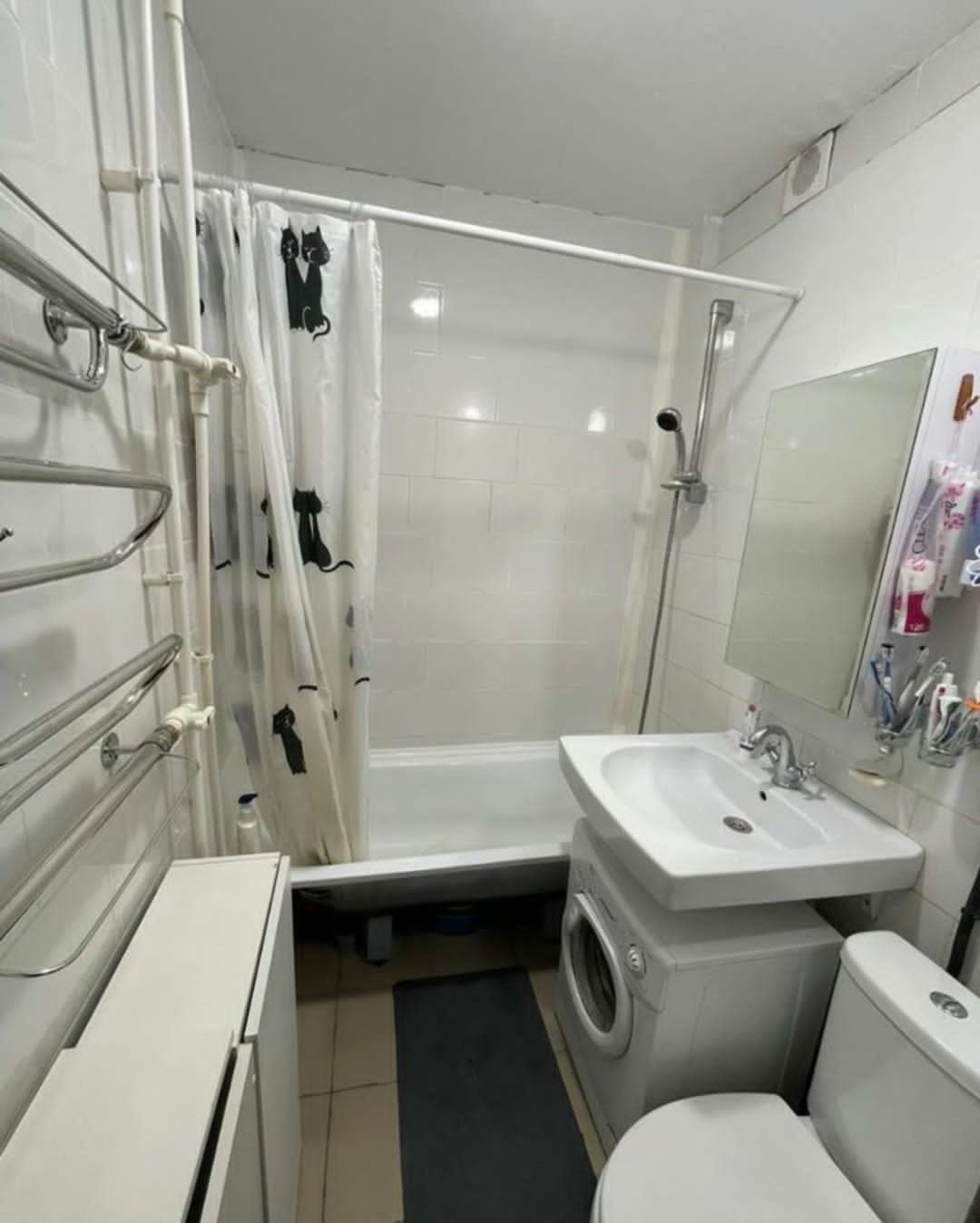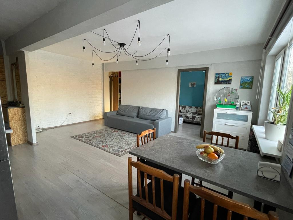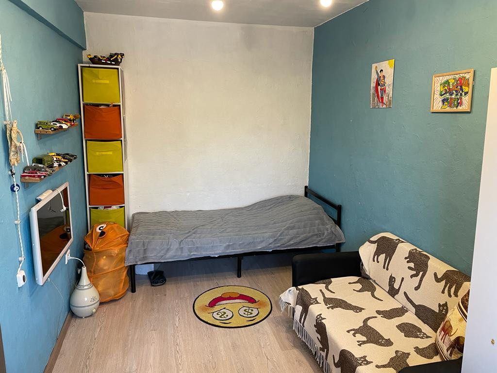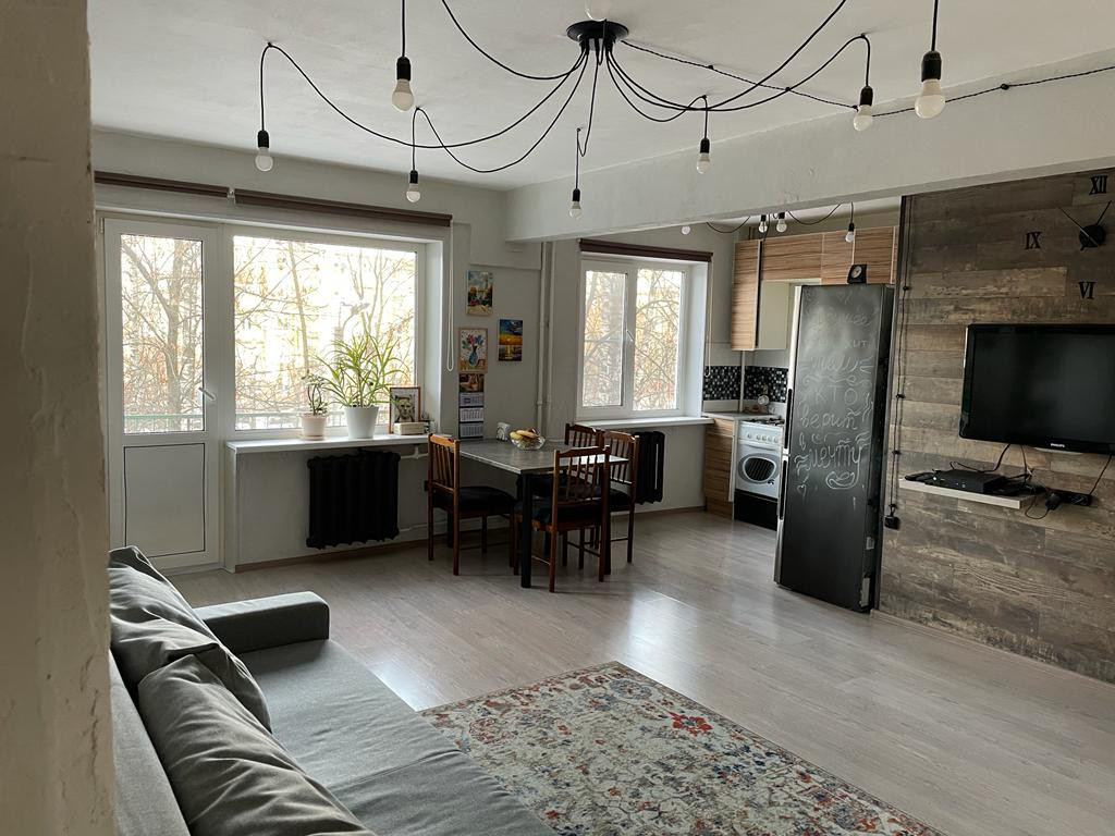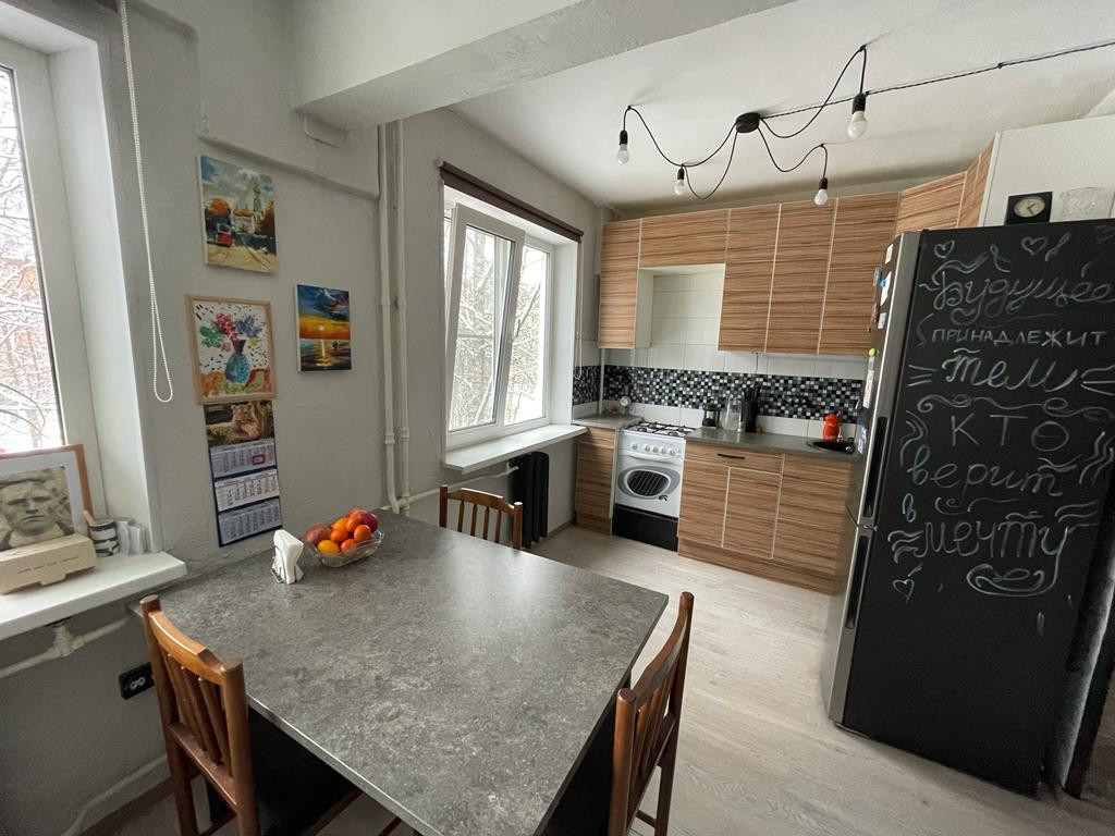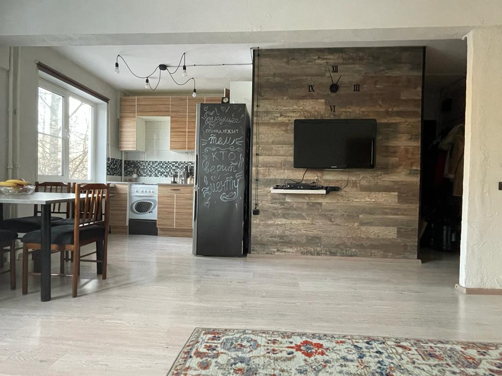 Оставляем всю мебель и технику (посудомоечная машина, стиральная машина, холодильник, телевизор), если нужно. Кухню объединили с большой комнатой, плюс есть ещё две отдельные комнаты. Большая гардеробная. Ремонту 5 лет (достаточно свежий, ещё и дизайнерский), электрика поменяна полностью, на полу ламинат, стены штукатурка/покраска (обоев нет нигде). Санузел совмещен (в кафеле).