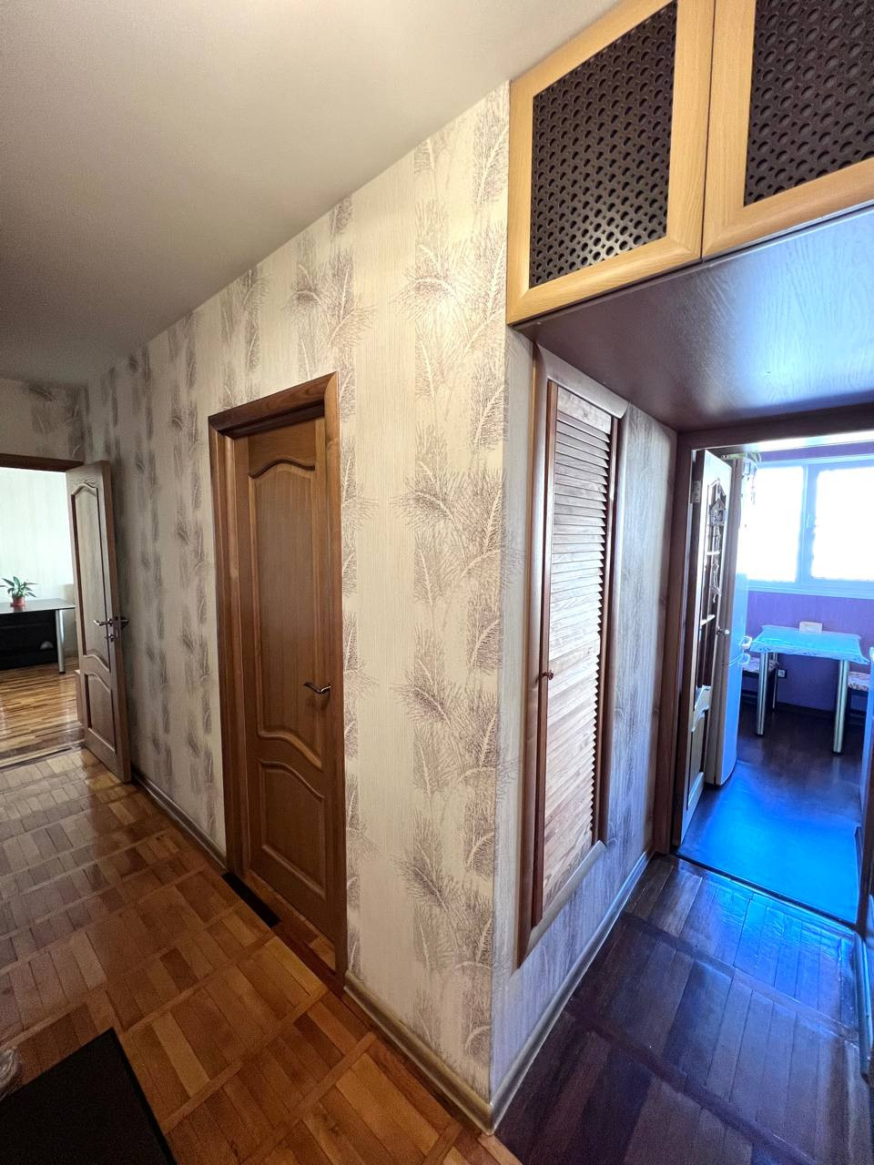 В коридоре оборудована вместительная антресоль с высокой нагрузочной способностью, ко всему перечисленному есть еще и потайной шкаф, где также можно разместить холодильник, освободив дополнительное место на кухне.