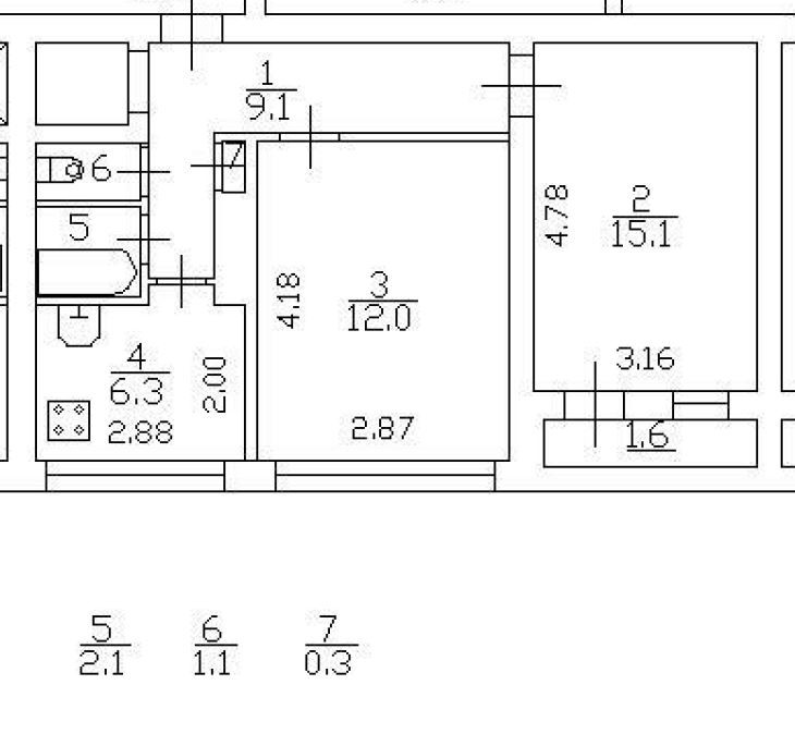 Площадь кухни 6.3 м2