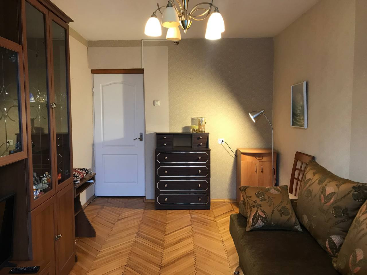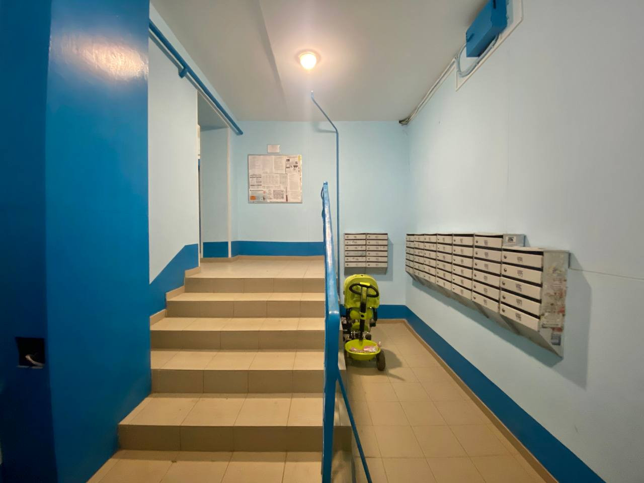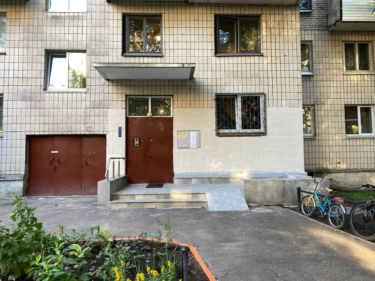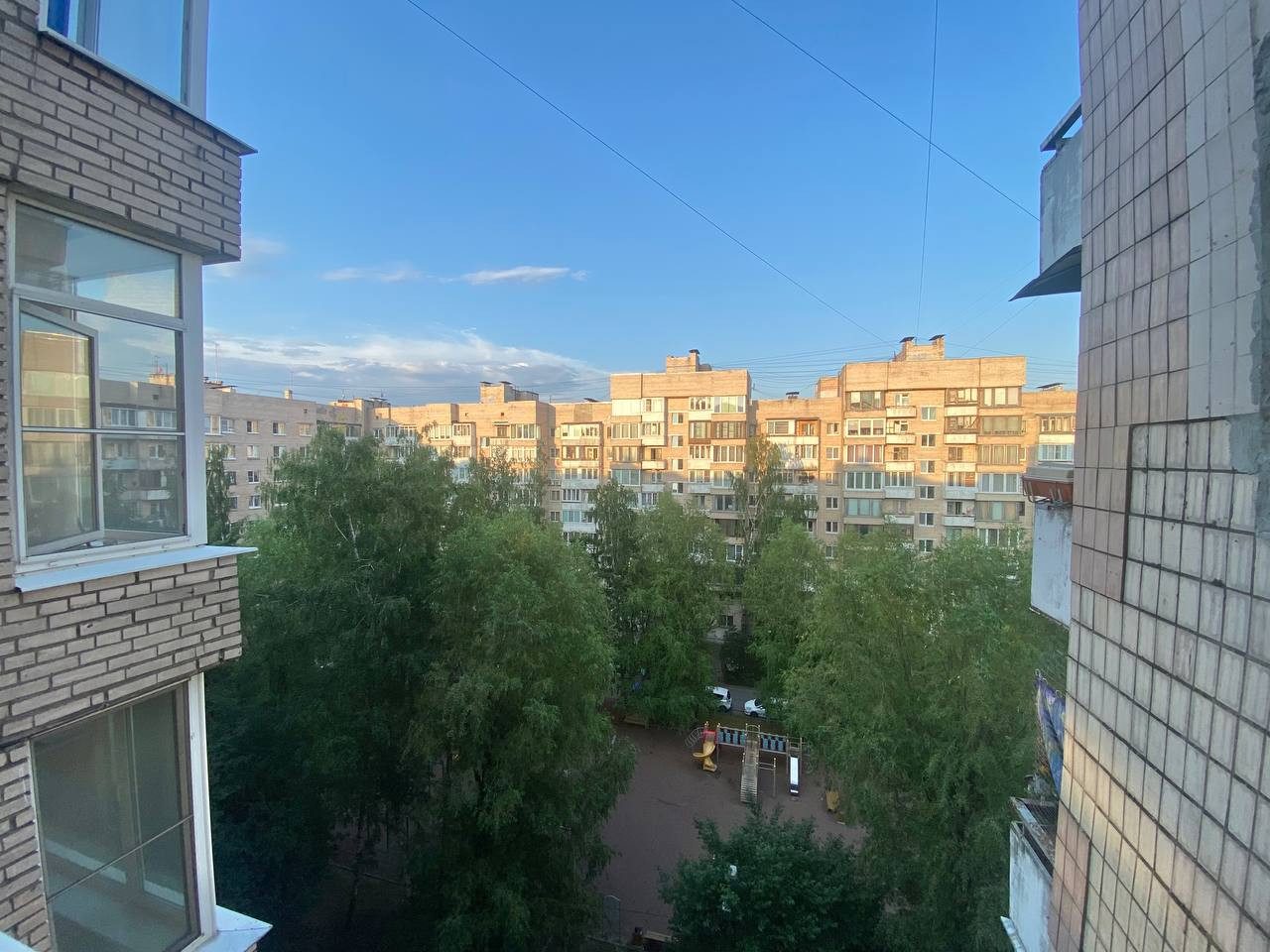 Во дворе есть детская площадка, очень тихо. Со всех сторон квартиру окружают зеленые скверы, мало машин, всегда можно найти парковочное место.