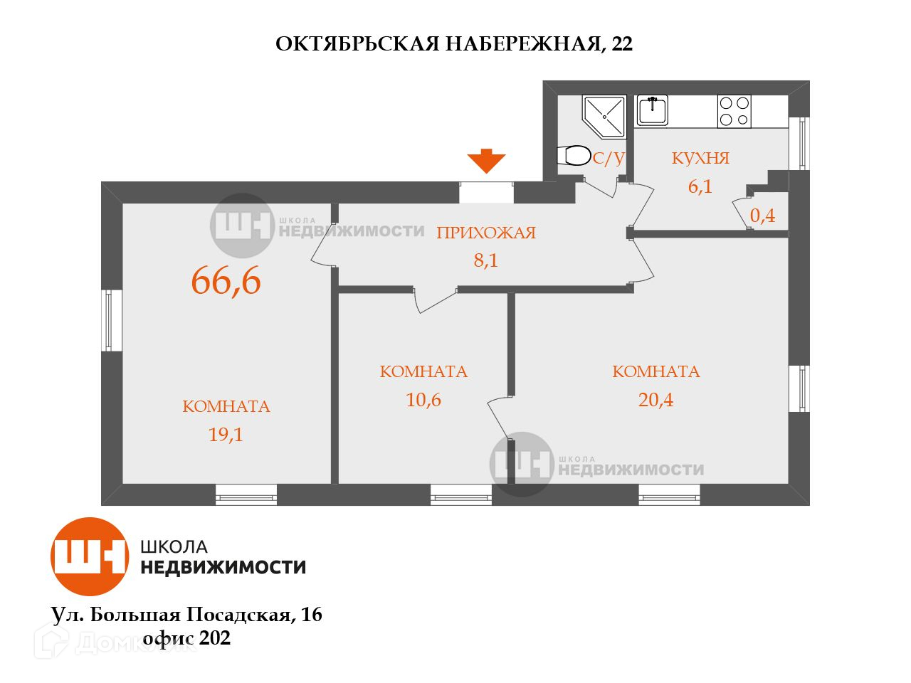 Общая площадь 66.6 м2