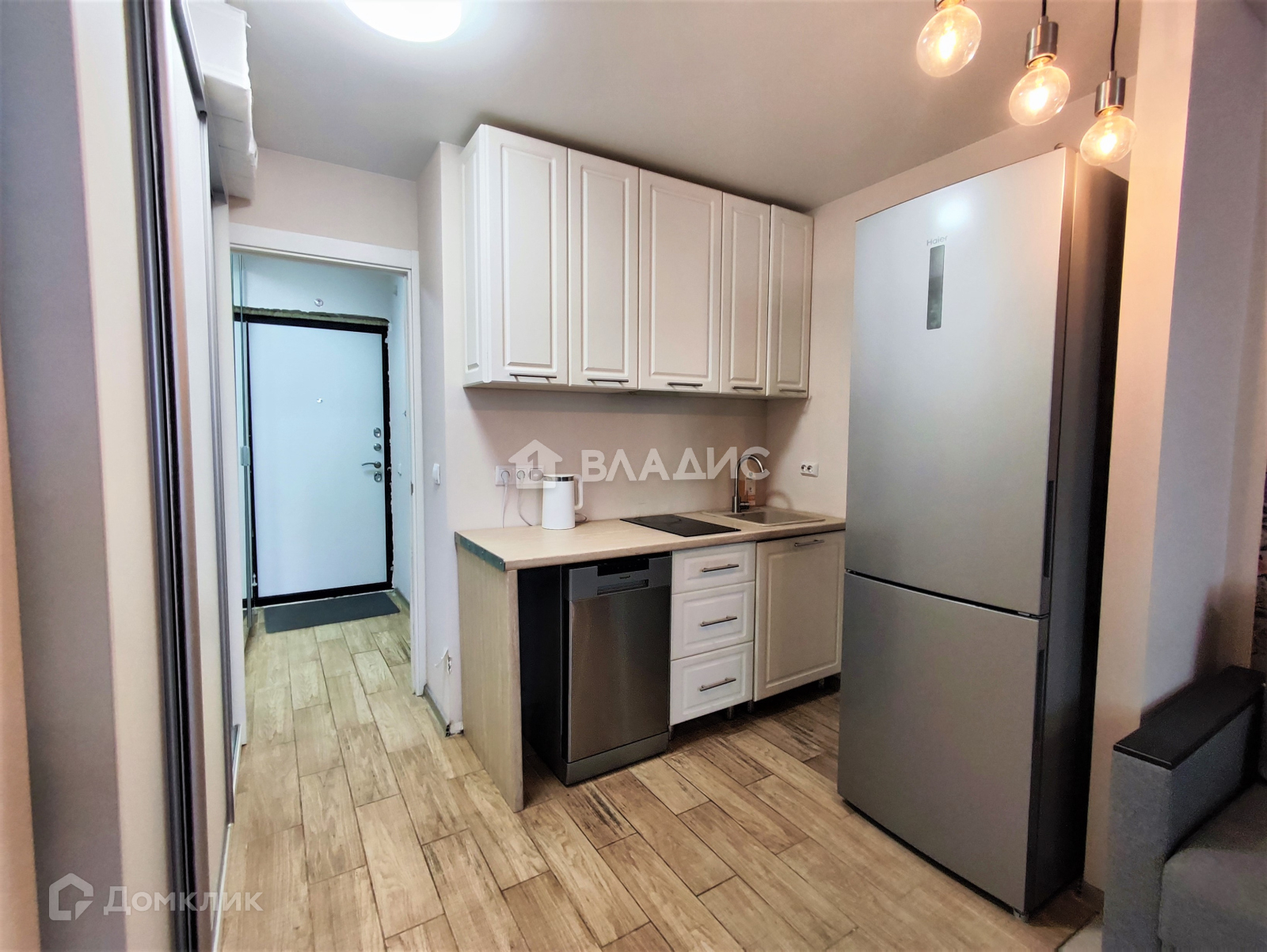 Продам отличную студию в доме 2018 года постройки. Общая площадь квартиры с лоджией 27,5 кв.м. Квартира в очень хорошем состоянии, ремонт делали для себя из качественных материалов, меняли проводку, на полу - ламинат и плитка, стены - дорогие обои, натяжной потолок, новая входная дверь, новый полотенцесушитель. Лоджия остеклена, 2,7 кв.м. Подойдет для собственного проживания или для сдачи в аренду, мебель и техника останется новым собственникам (мебель и техника в отличном, рабочем состоянии). Много мест хранения - 2 больших шкафа, комод. Продуманная подсветка разных зон - спальни, кухни, коридора.