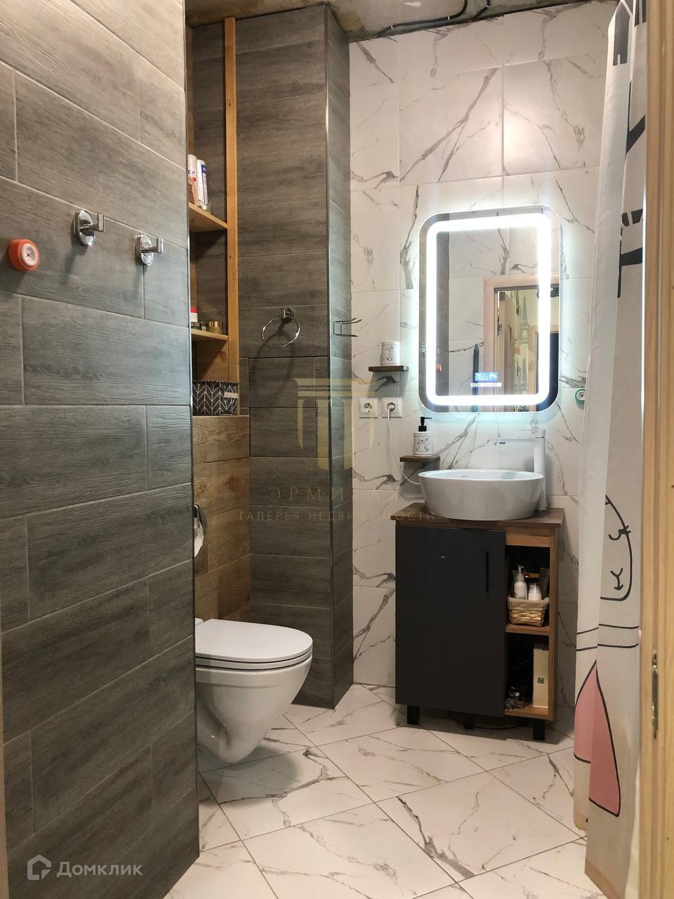 В прихожей и в ванной комнате теплые полы.  Двухжильные, прогрев пола достаточно быстрый. Умные датчики пола, программируемые.