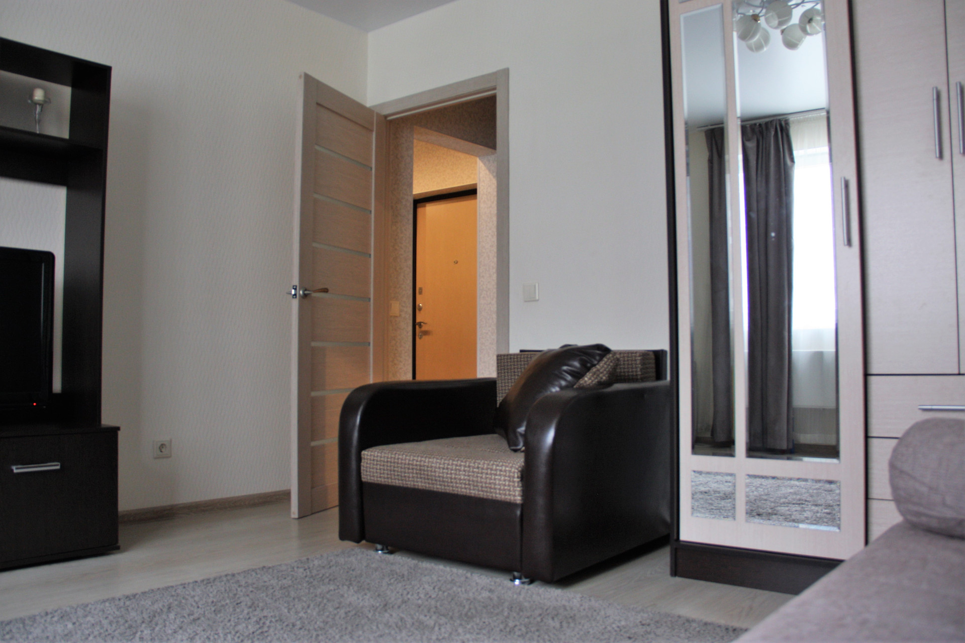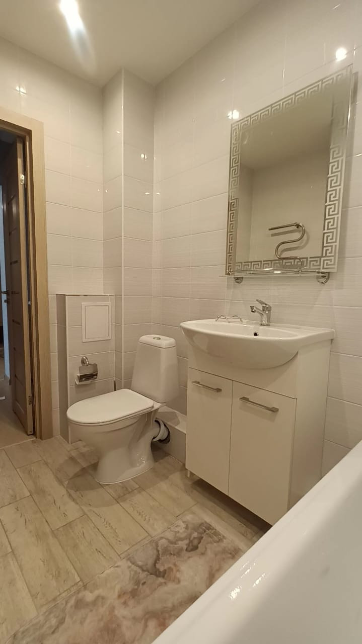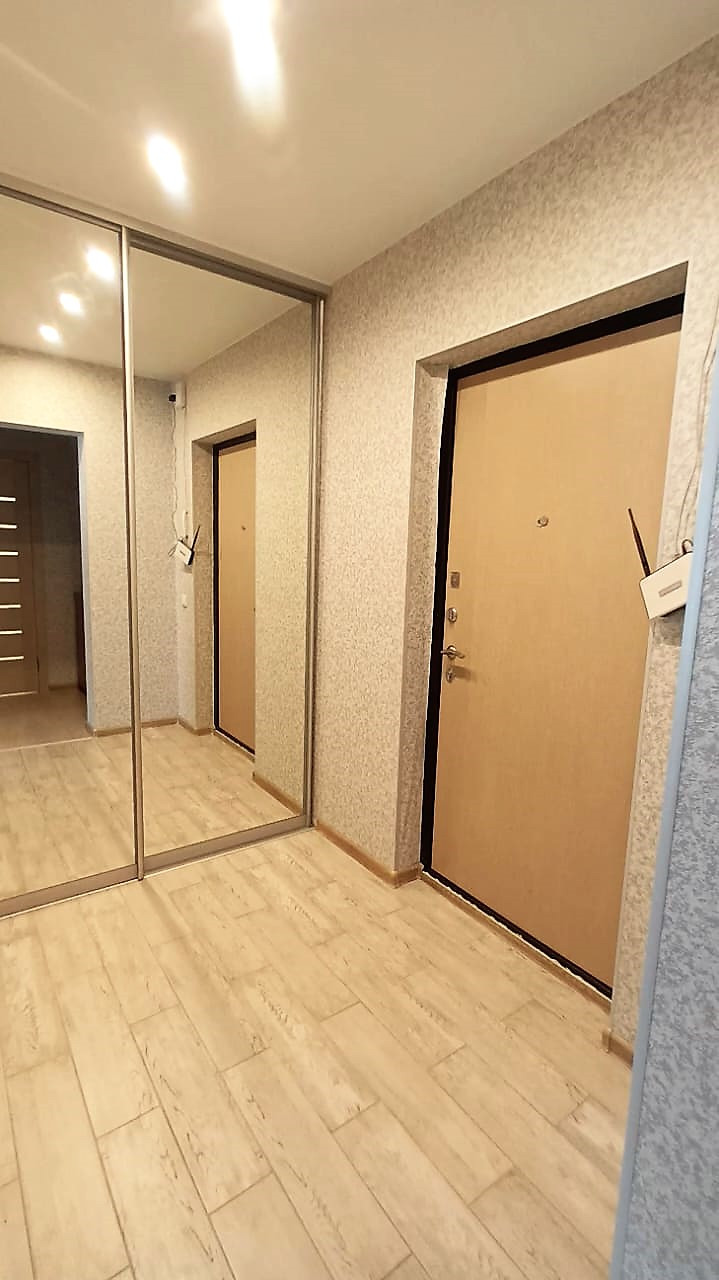 Мебель приобреталась недавно, остается новому владельцу: раскладной диван, раскладное кресло, кухонный гарнитур, шкаф-купе. В коридоре отличный вместительный шкаф-купе. В ванной оригинальная подсветка.