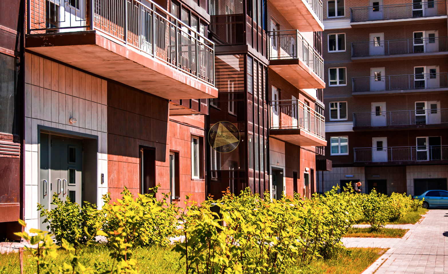 - Придомовая территория благоустроена, предусмотрены пешеходные дорожки и тротуары, зеленые зоны с ландшафтным дизайном, места для отдыха, детские и спортивные площадки с безопасным резиновым покрытием.