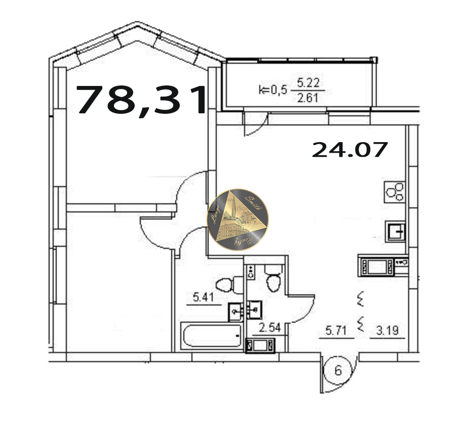 - Общая площадь квартиры 78,31 м2.