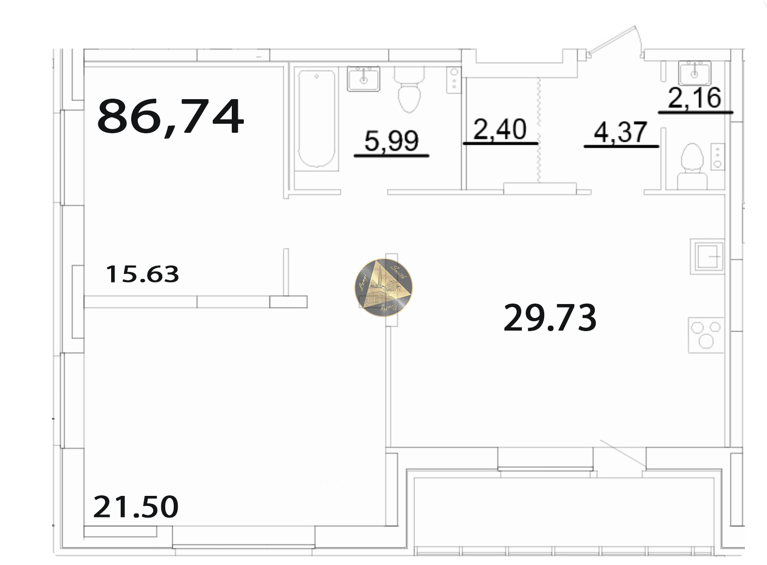 - Общая площадь квартиры 86,74 м2.