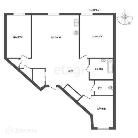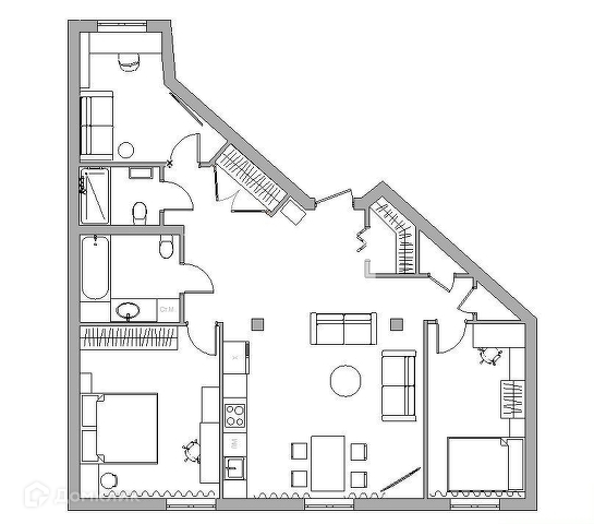3. Эргономичная планировка — с учетом современных стандартов и тенденций: просторная кухня-гостиная с встроенной элегантной кухней и качественной техникой, две спальни, гостевая комната/кабинет, два санузла, множество продуманных систем хранения — можно полностью убрать сезонные вещи, лыжи, велосипеды и хозяйственный инвентарь, сохранив идеальный порядок и простор в квартире