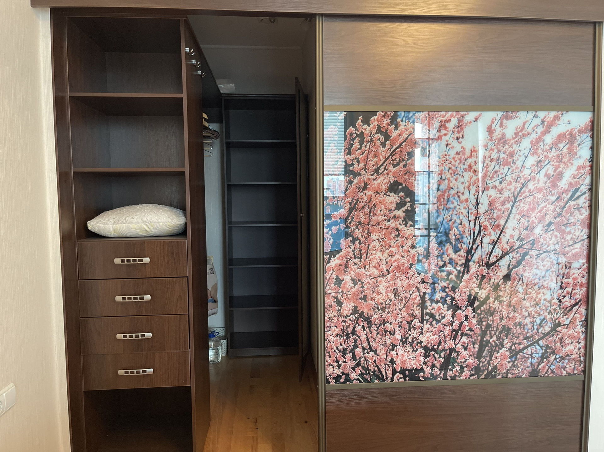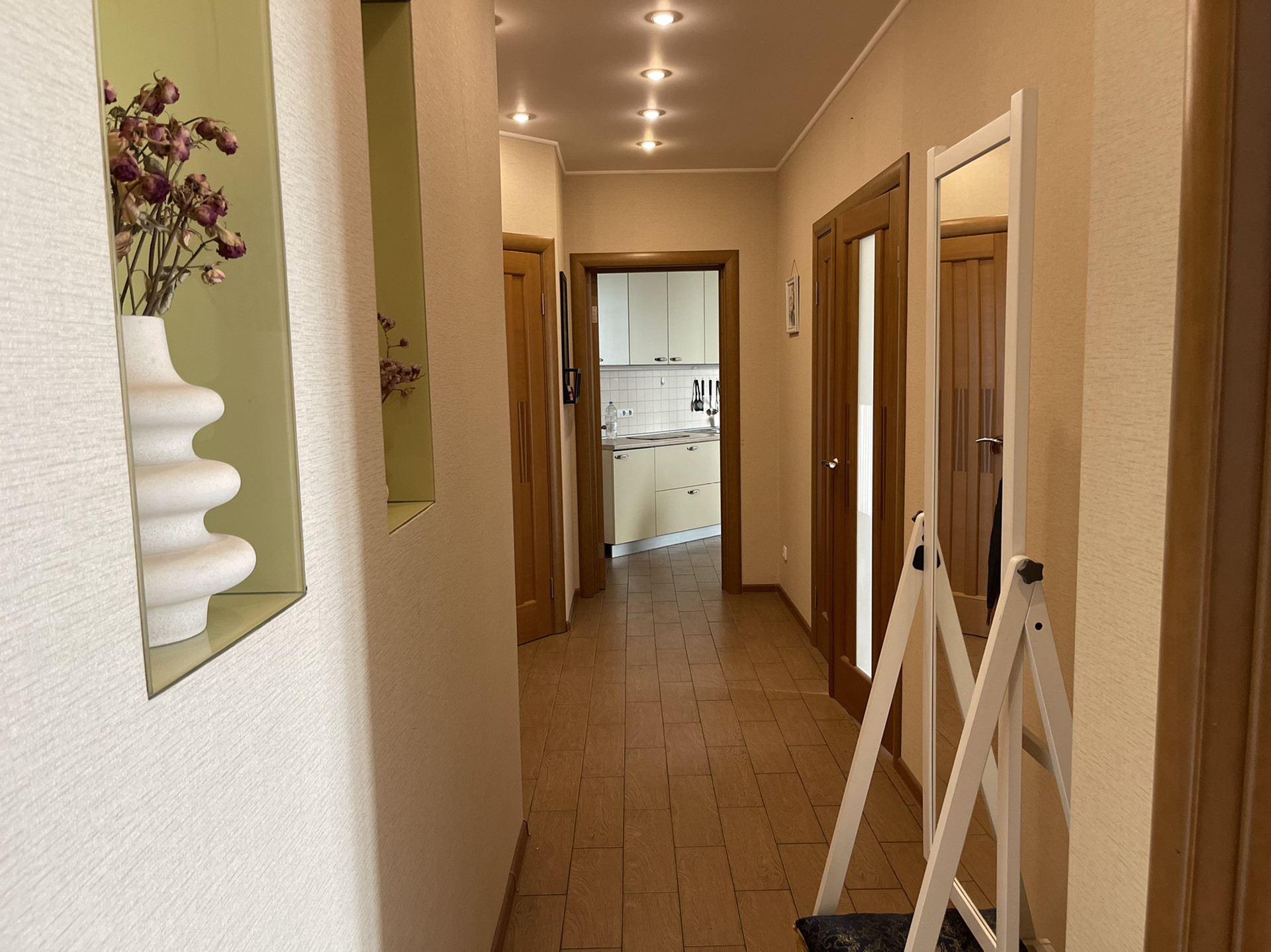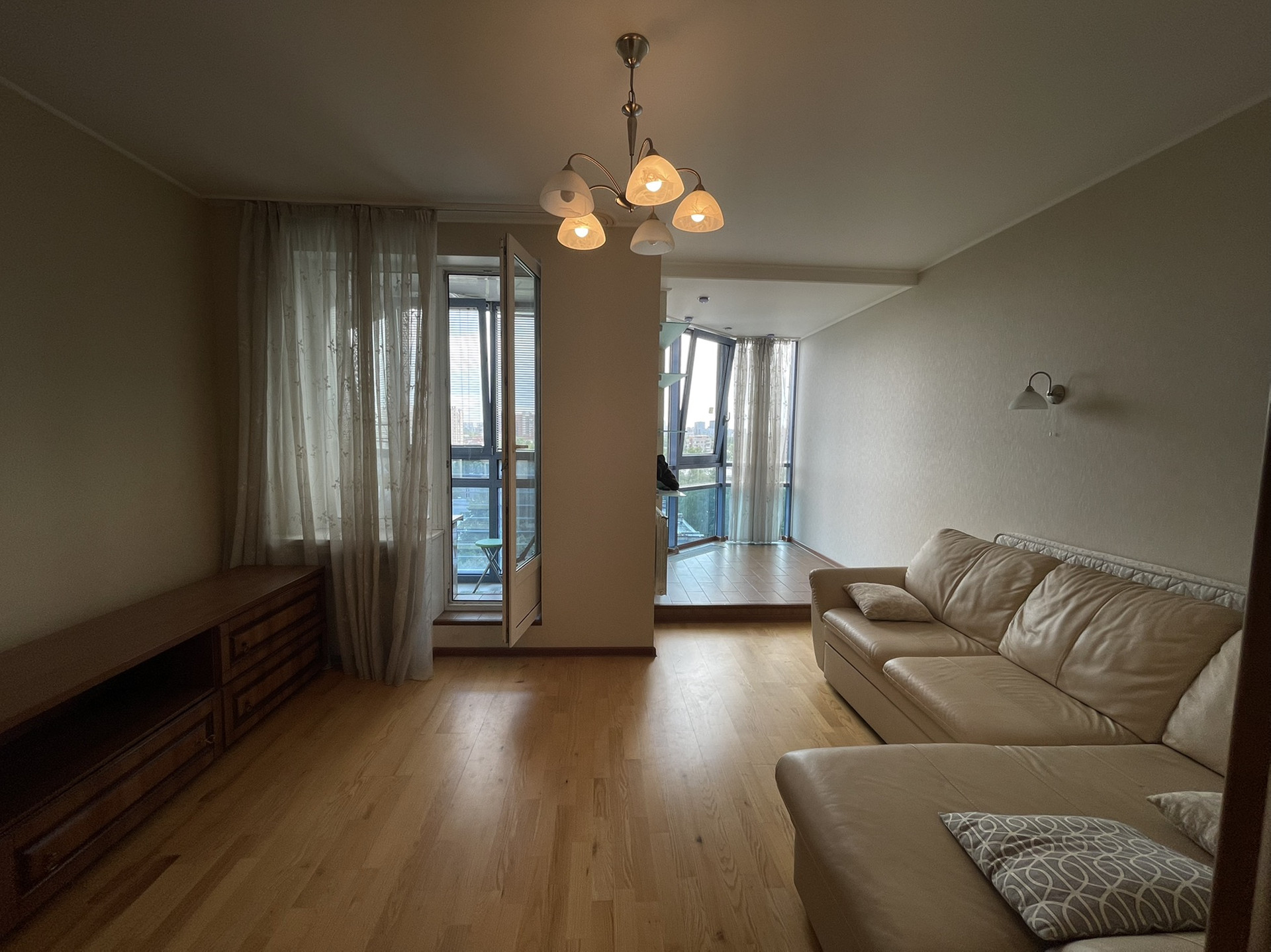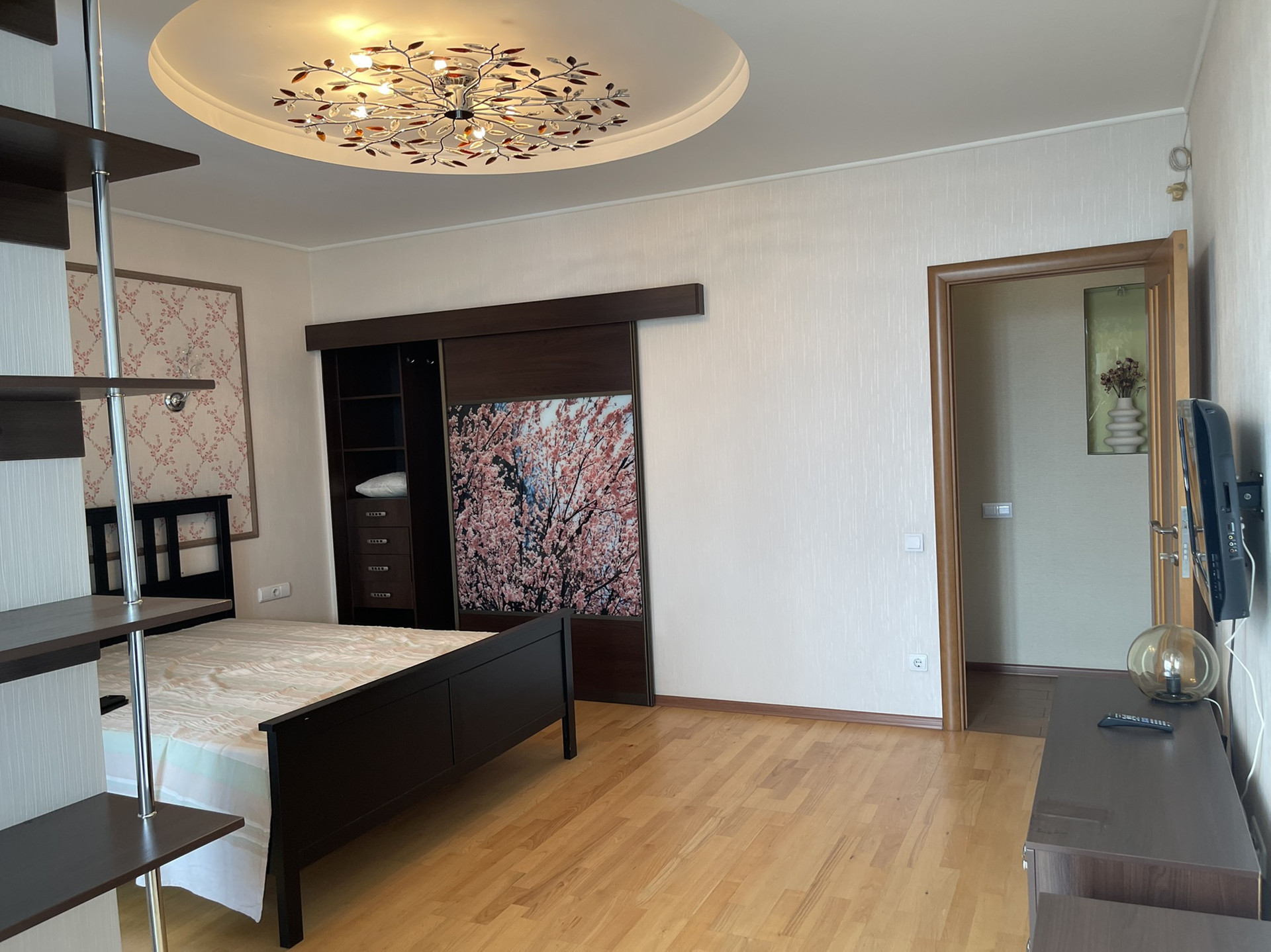 Имеется вместительная гардеробная возле кровати, две застекленные лоджии, два сан узла, бойлер для воды и подогрев пола