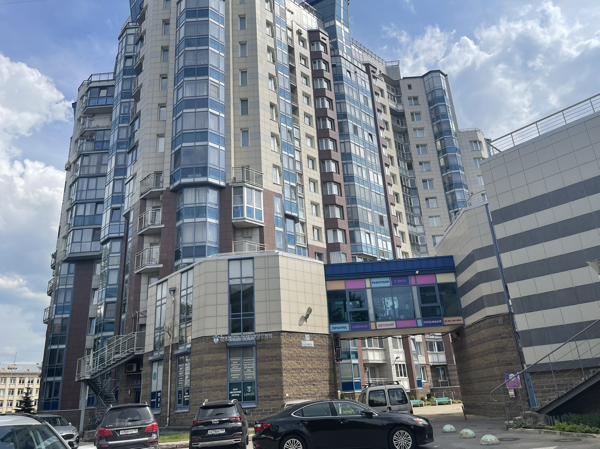 Первый этаж полностью определен под коммерцию, есть небольшой спортивный клуб, коммерческие детские садики, студия красоты.