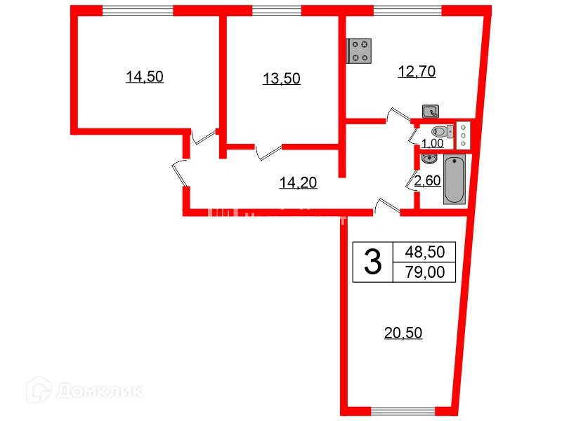 Общая площадь 79 м2