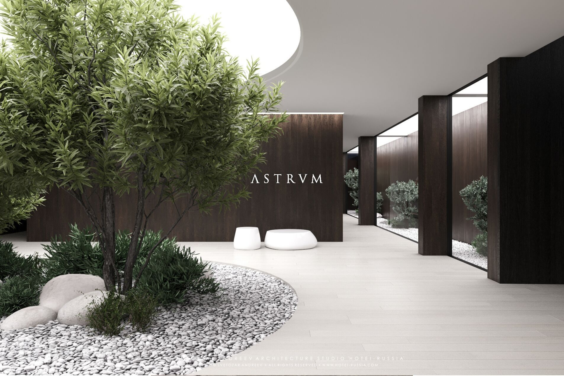 В самом сердце комплекса ASTRVM расположился элегантный внутренний двор-сад, где каждая деталь продумана для создания умиротворённой атмосферы, во дворе нет машин и все растения гипоаллергенны.