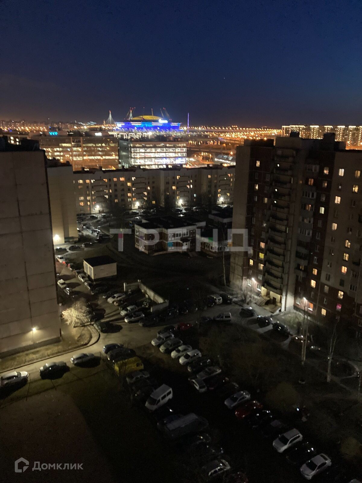 Окна собственного балкона выходят на Финский залив, Елагин остров и стадион Газпром Арена.