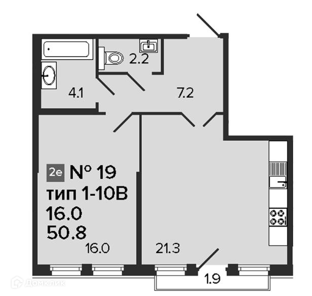 Общая площадь 50.8 м2