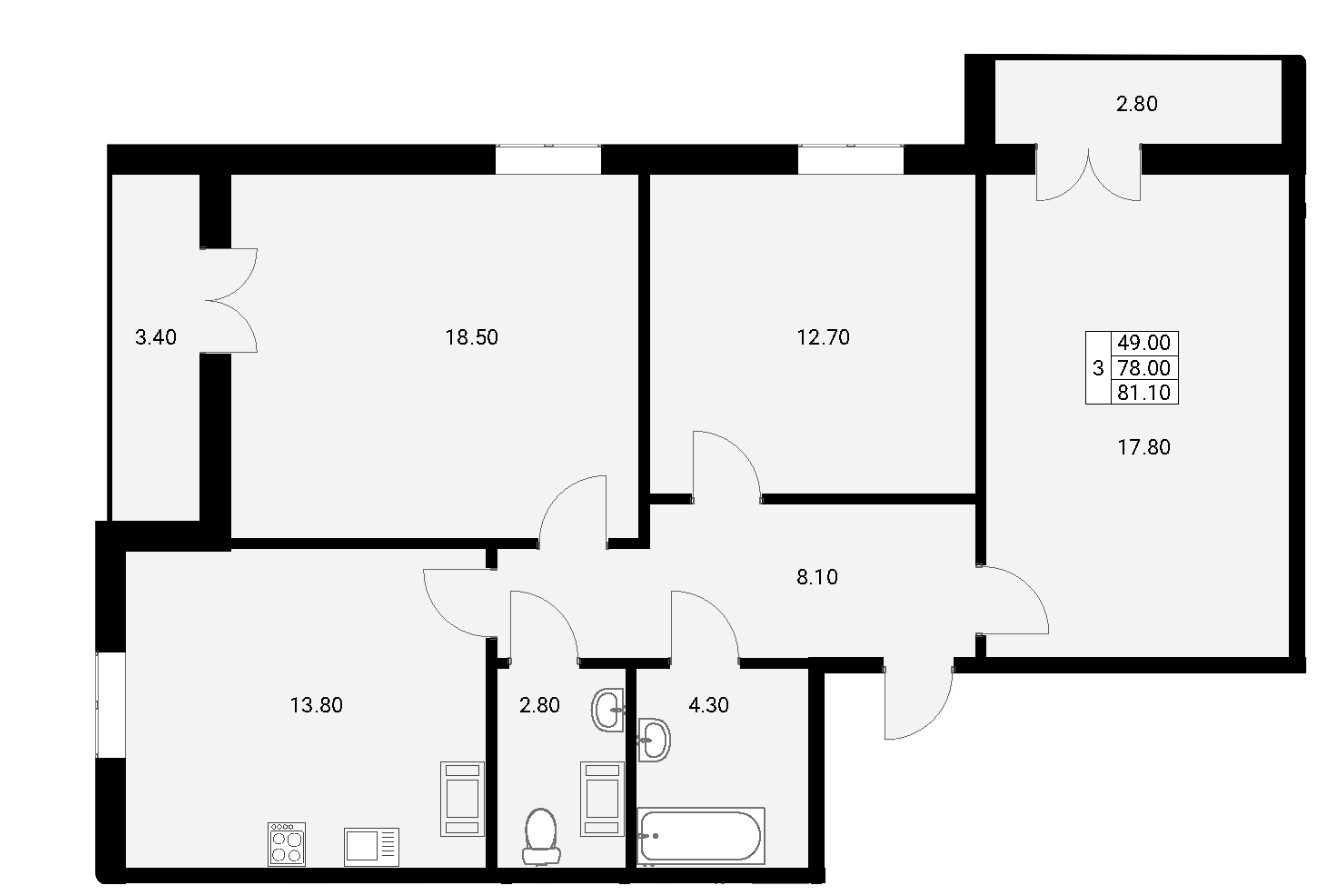 Общая площадь 78 м2