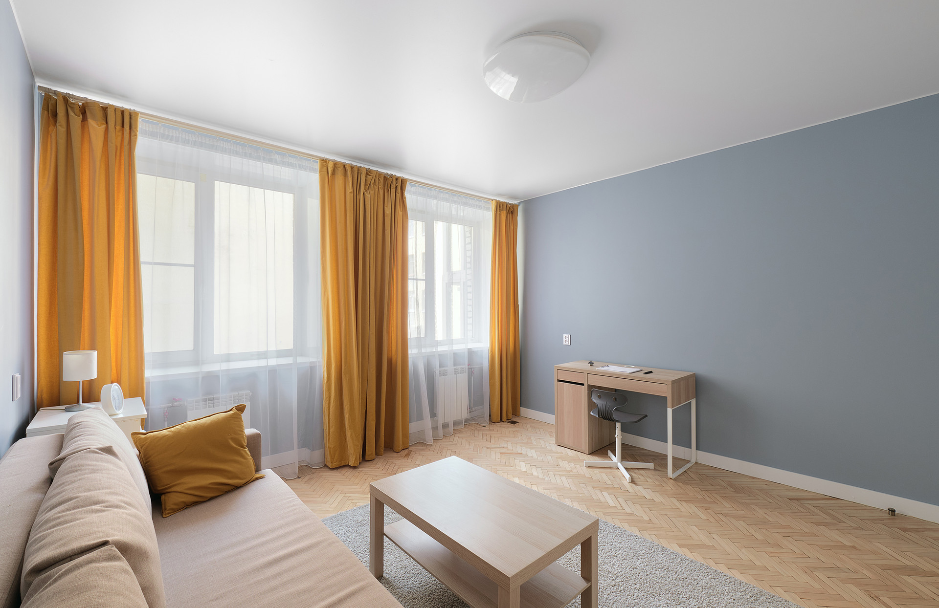 - В комнате прекрасный светлый паркет;