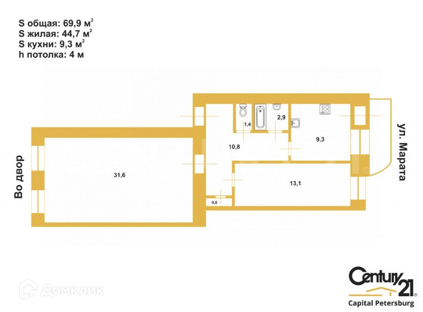 Уважаемый покупатель! Предлагаем к продаже уникальную квартиру в самом центре Санкт-Петербурга с высокими потолками 4 м и балконом с видом на Невский проспект.
