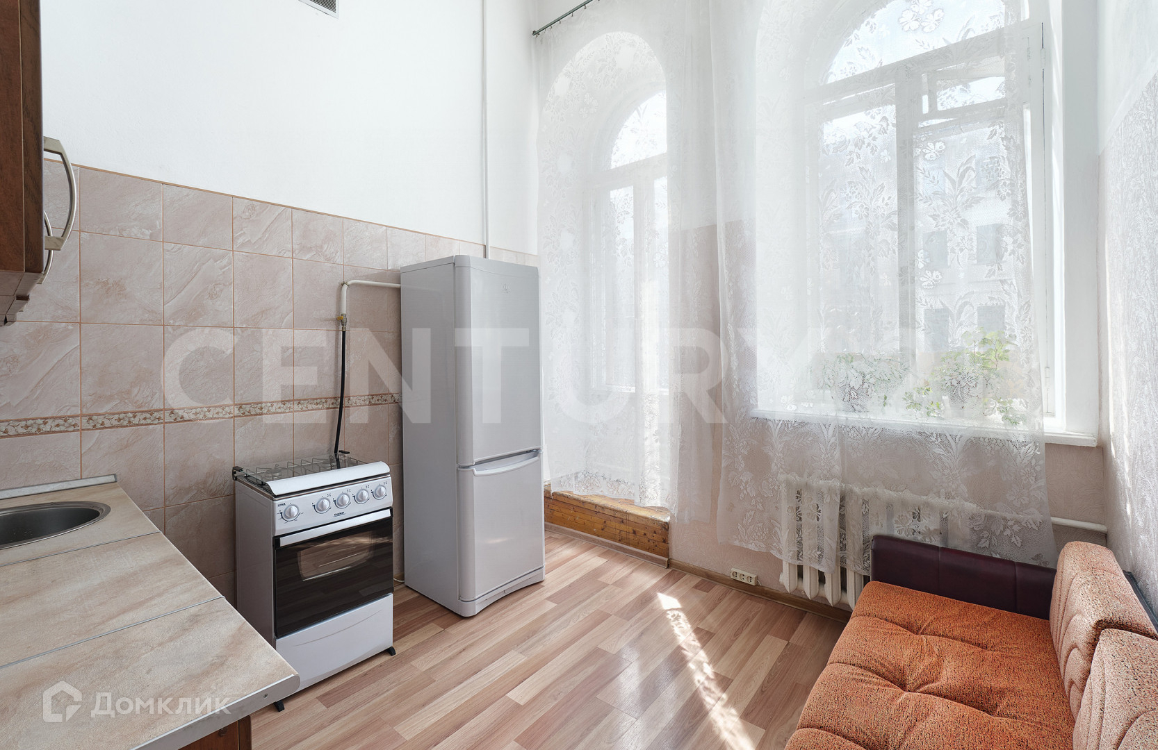 Комнаты 30кв. м и 13.3кв.м.. кухня 9.3 кв.м. Высокие арочные окна, много света.