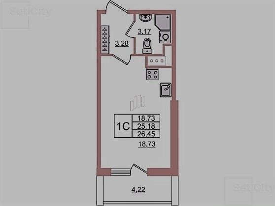 Общая площадь 24.8 м2