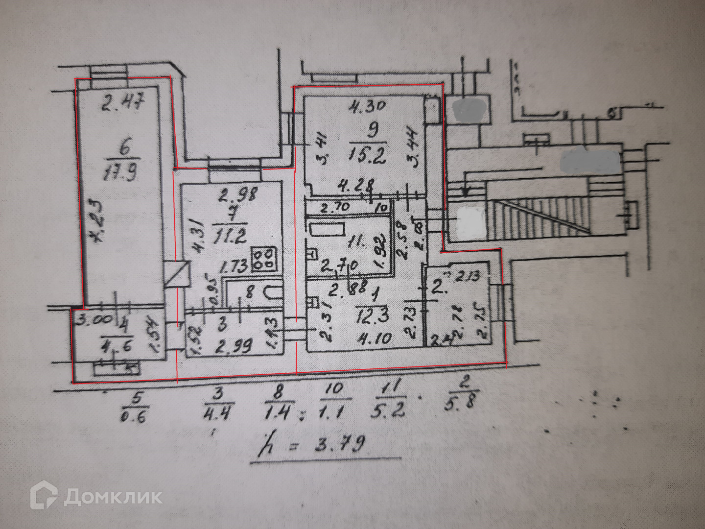 Высота потолков 3.79 м