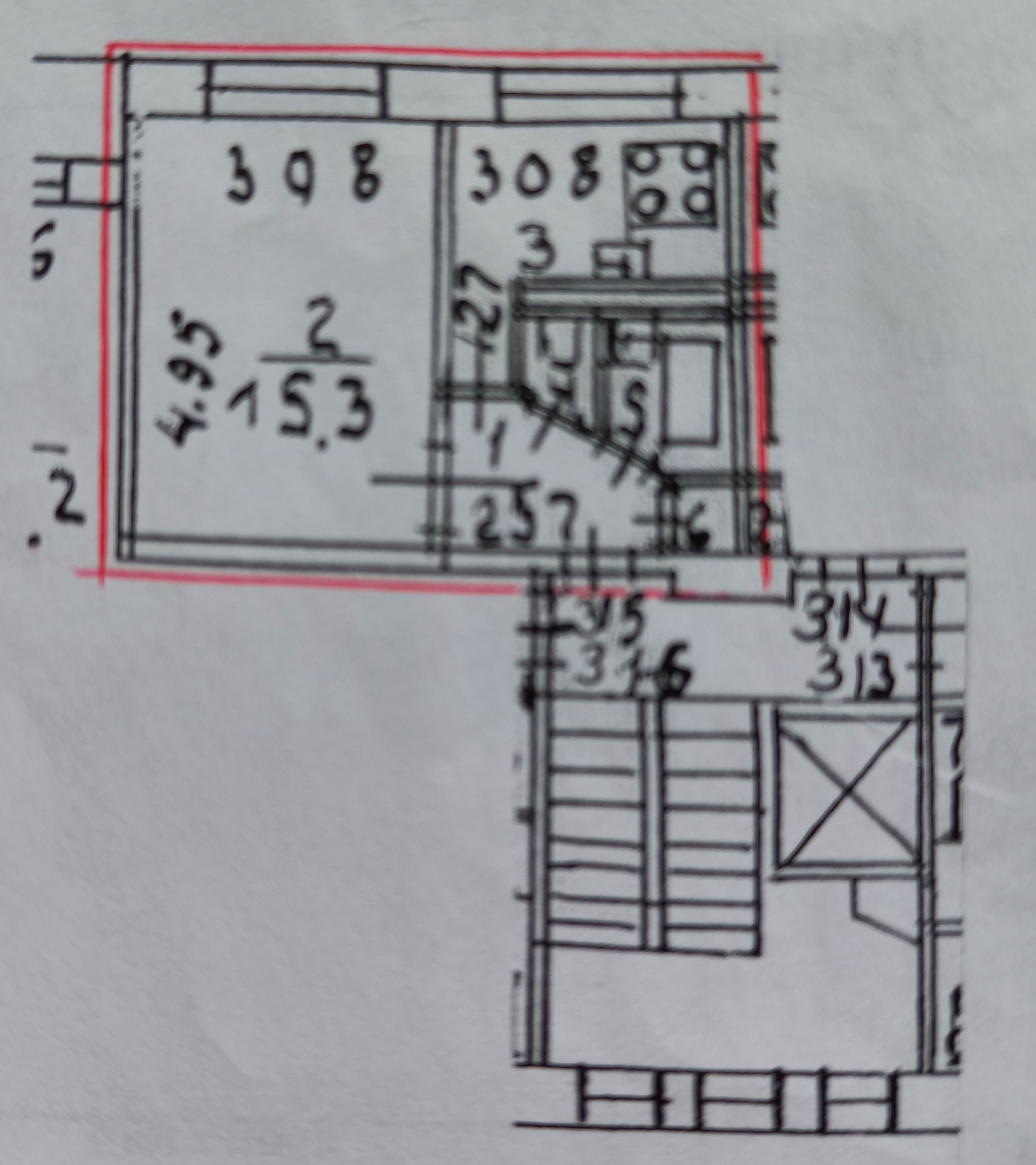 Жилая площадь 15.3 м2
