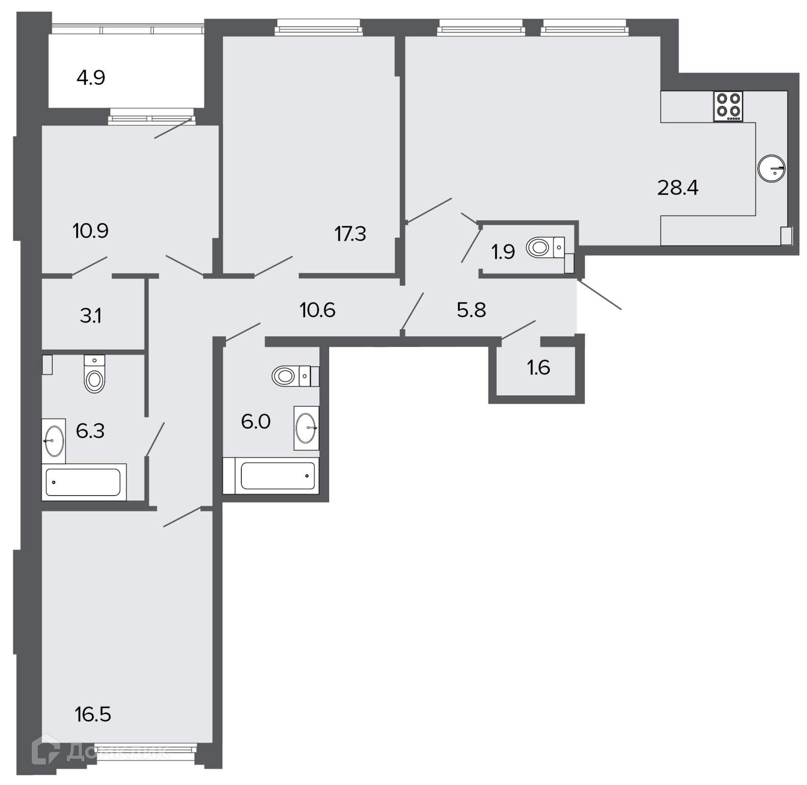 Площадь кухни 28.4 м2