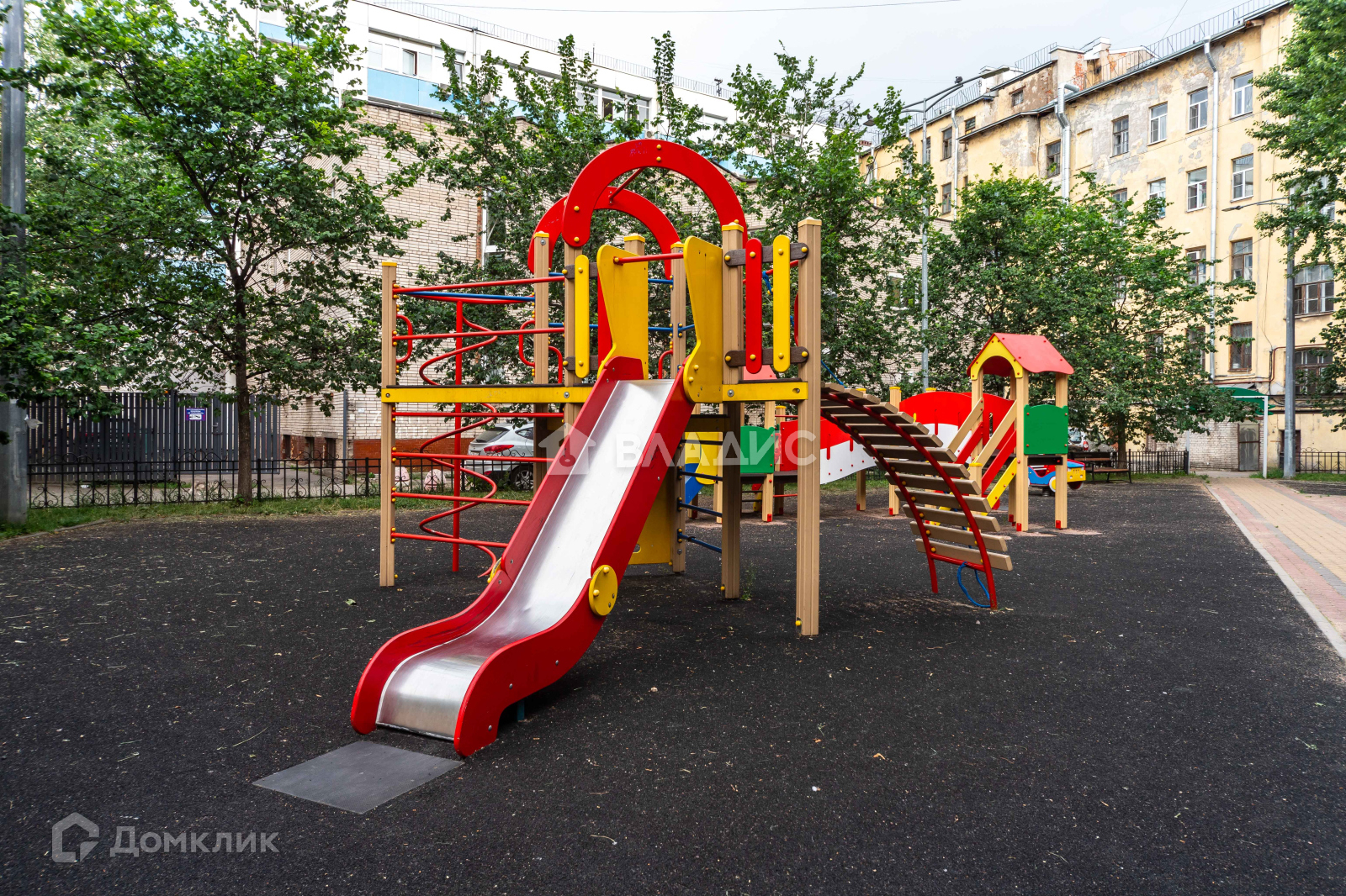 - Придомовая территория оборудована для отдыха и детских игр.