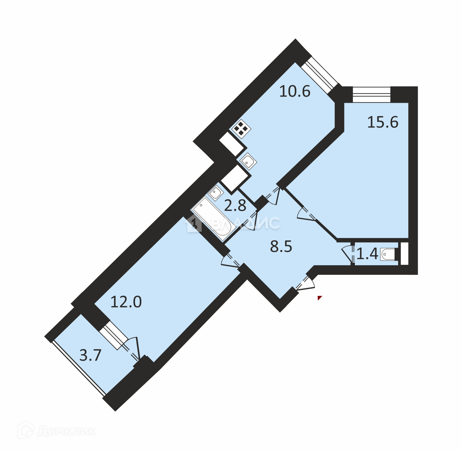 Комнаты - 15,6 и 12 м2