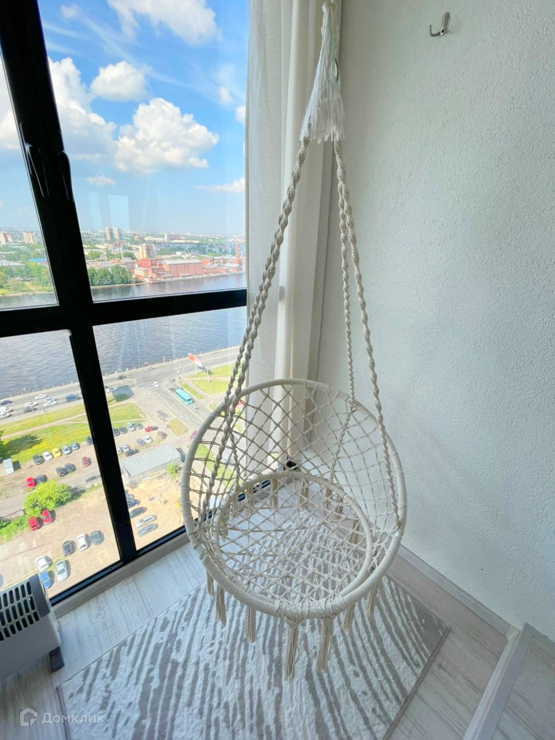 Комфортная лоджия с видовыми окнами в пол и качелью является отличной зоной отдыха.