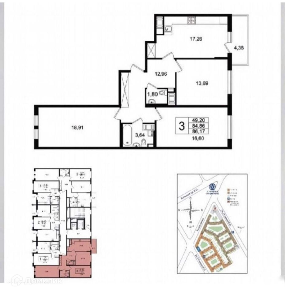 Арт. 51196912. Продаётся 3 комнатная квартира