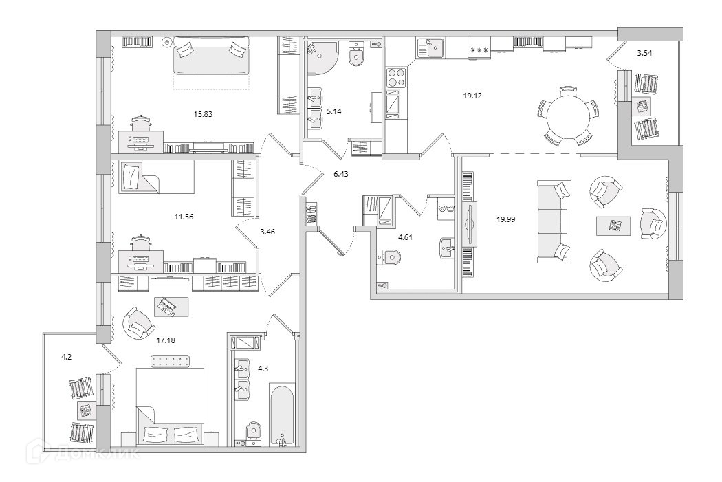4-комнатная квартира, 115.4 м2, этаж 11 / 12, на продажу в Санкт-Петербурге, Белоостровская улица, 12