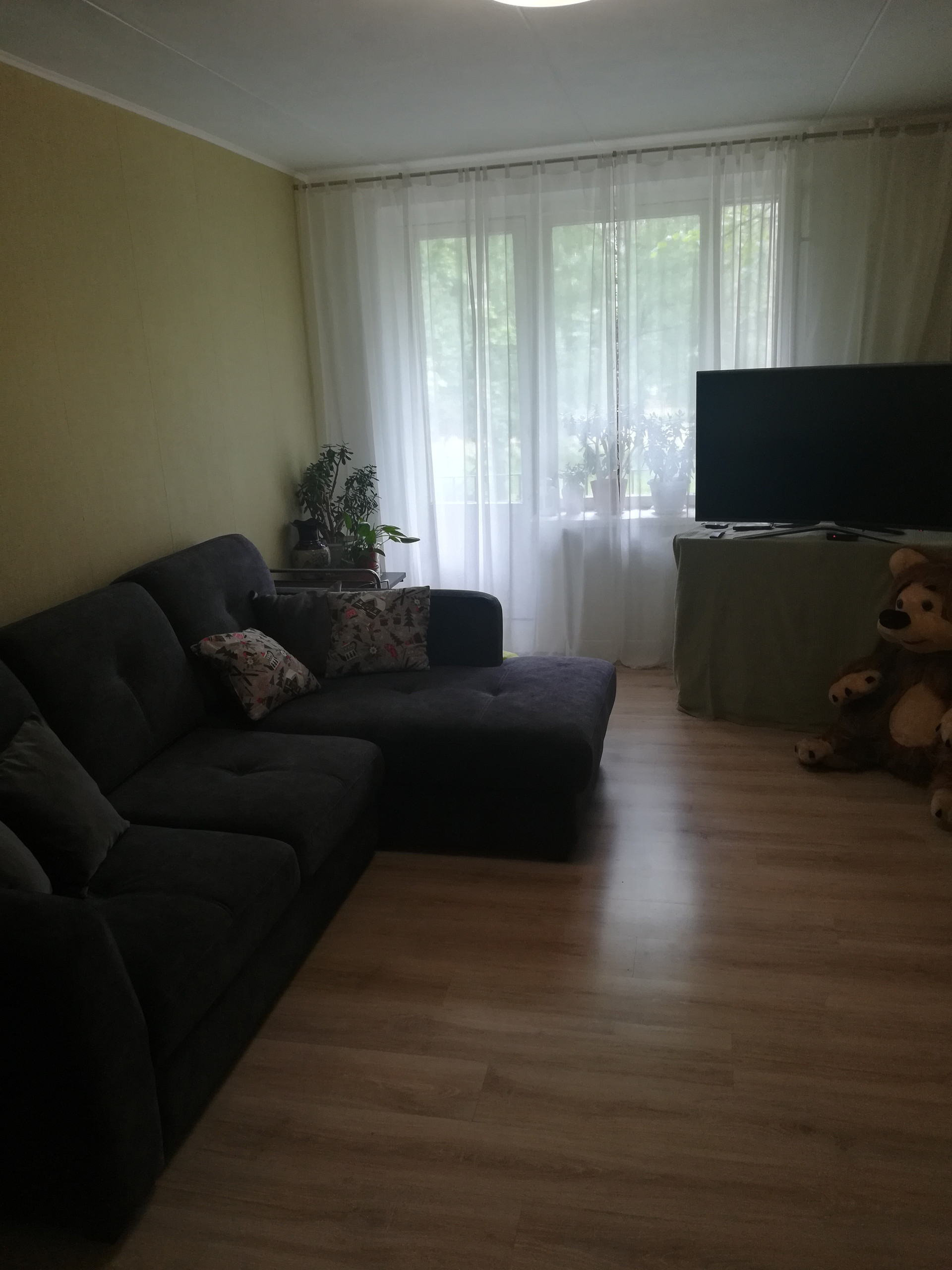 -Паркет сохранен только в одной комнате. В одной бетонная стяжка и ламинат, в третьей (гостиной) -сухая стяжка и ламинат по финской технологии. Квартира очень теплая, хорошая звукоизоляция.