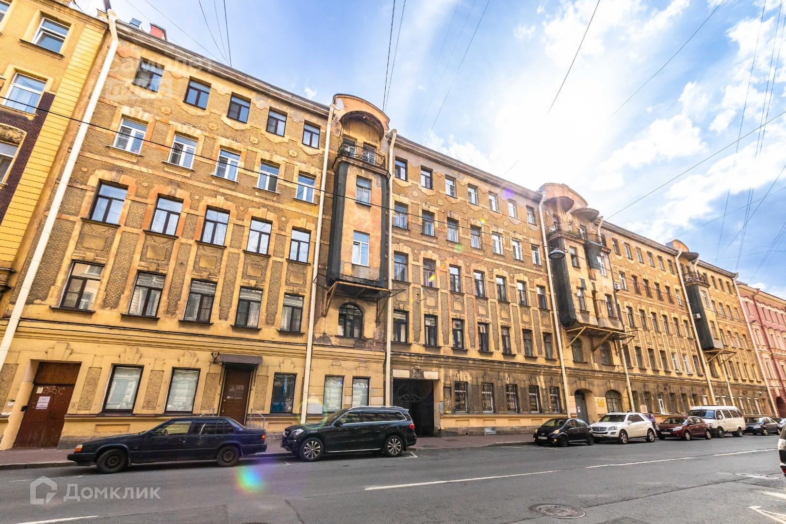 Квартира расположена в доходном доме страхового общества Россия, построенном в стиле модерн в 1902 году и включённом в список объектов культурного наследия. В советское время в нём жили литератор Михаил Кузьмин и писатель Михаил Слонимский, отец композитора Сергея Слонимского. Капитальный ремонт производился в 1960-х годах.