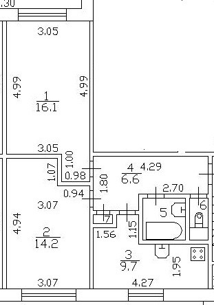 Площадь кухни 9.7 м2