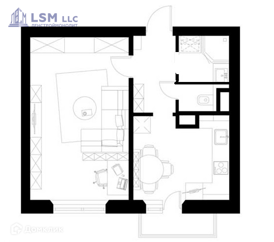 Общая площадь 33.3 м2