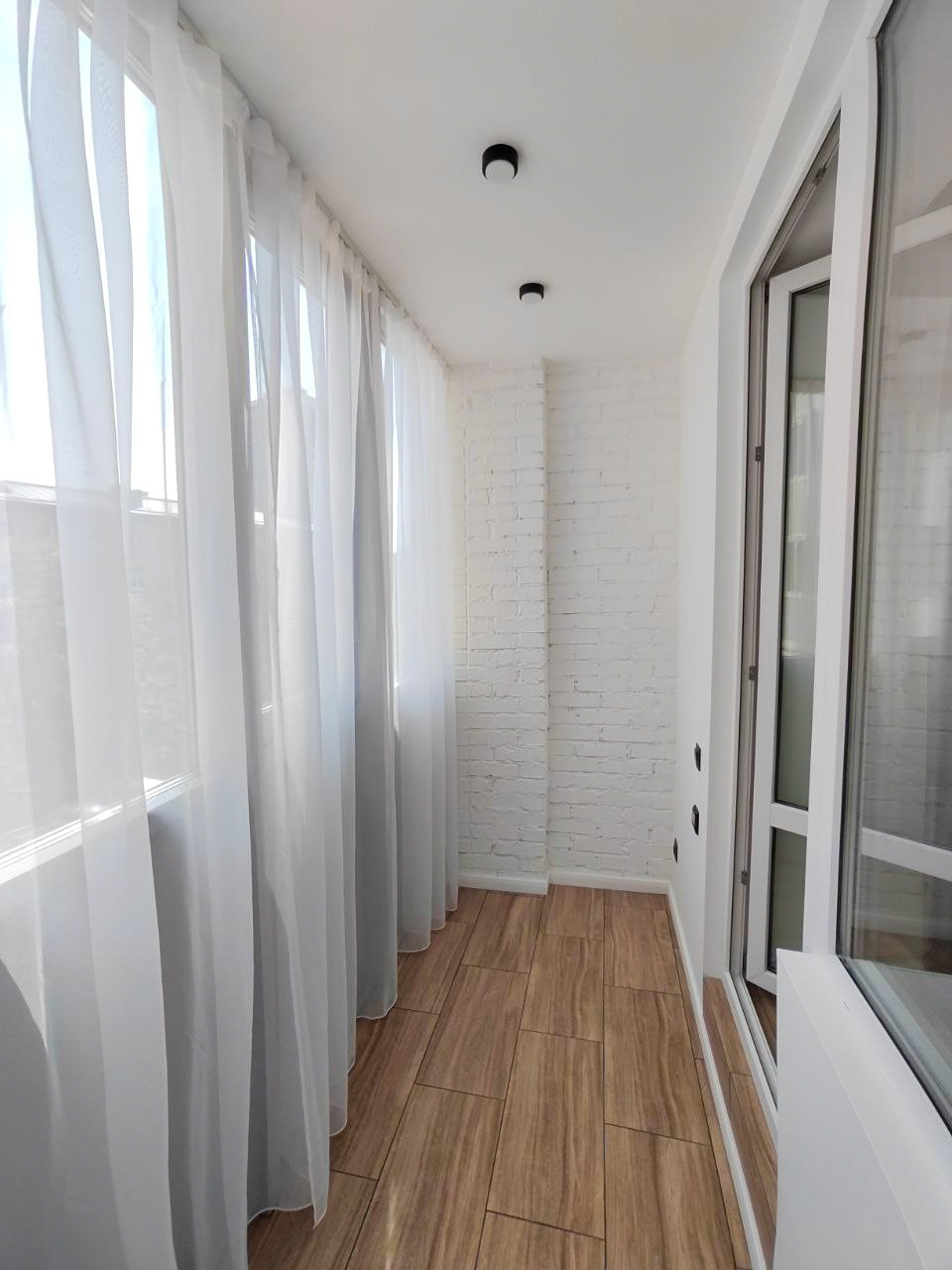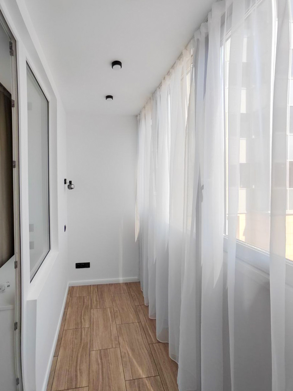 На лоджии помимо теплого пола так же как и во всей квартире стоят двухкамерные стеклопакеты, сделано освещение и розетки, что позволяет создать там уютную зону для отдыха или рабочий кабинет.