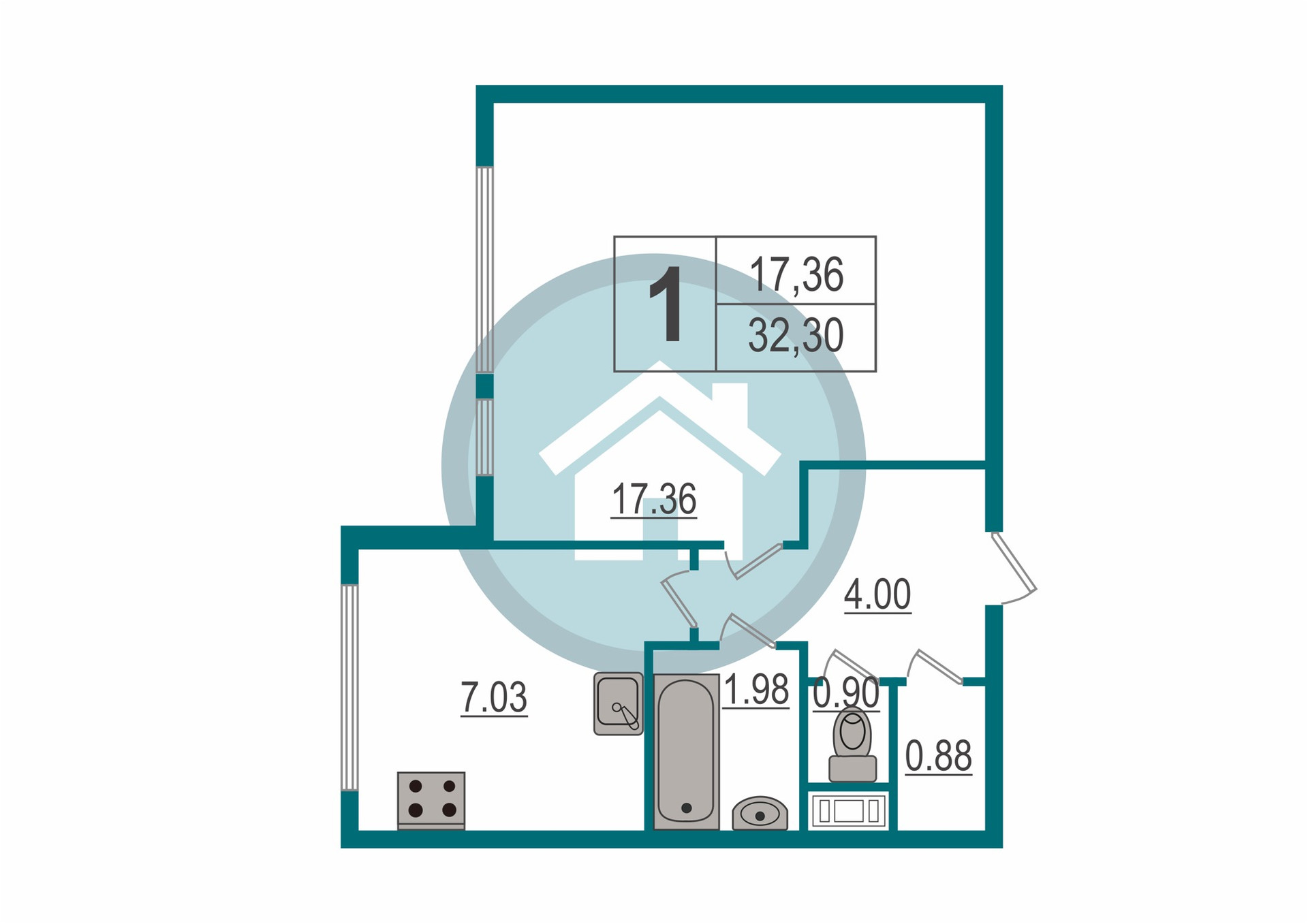 Общая площадь 32.4 м2