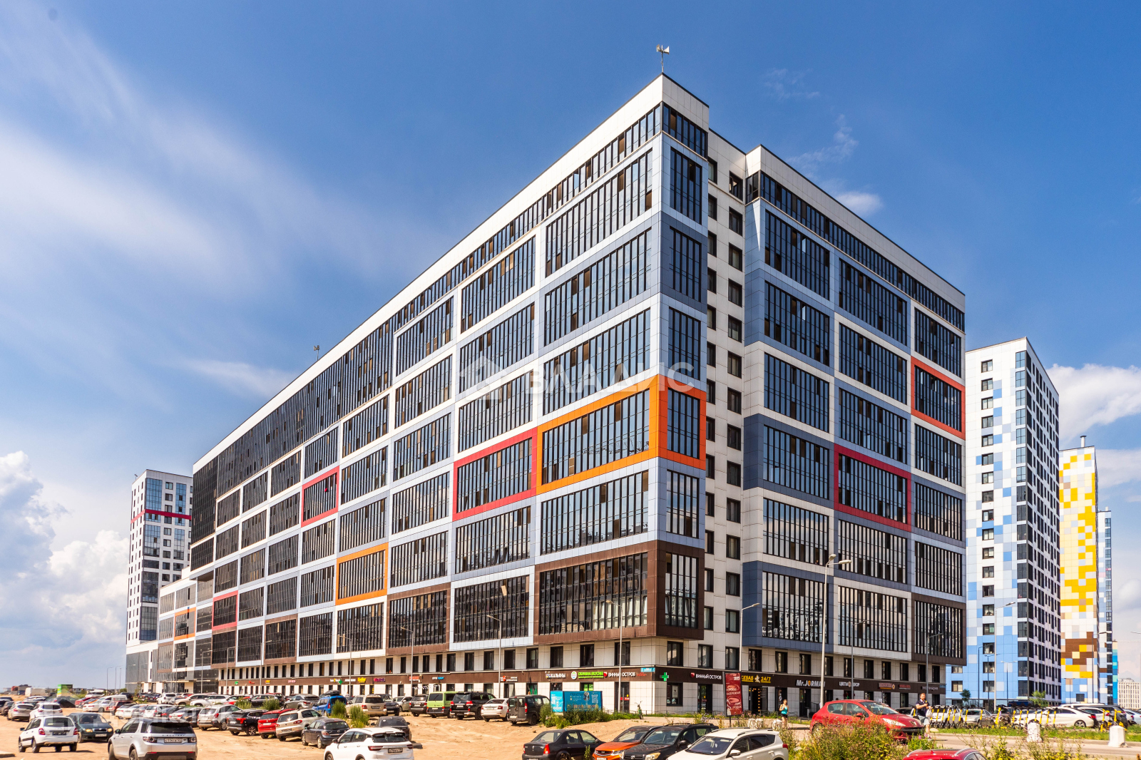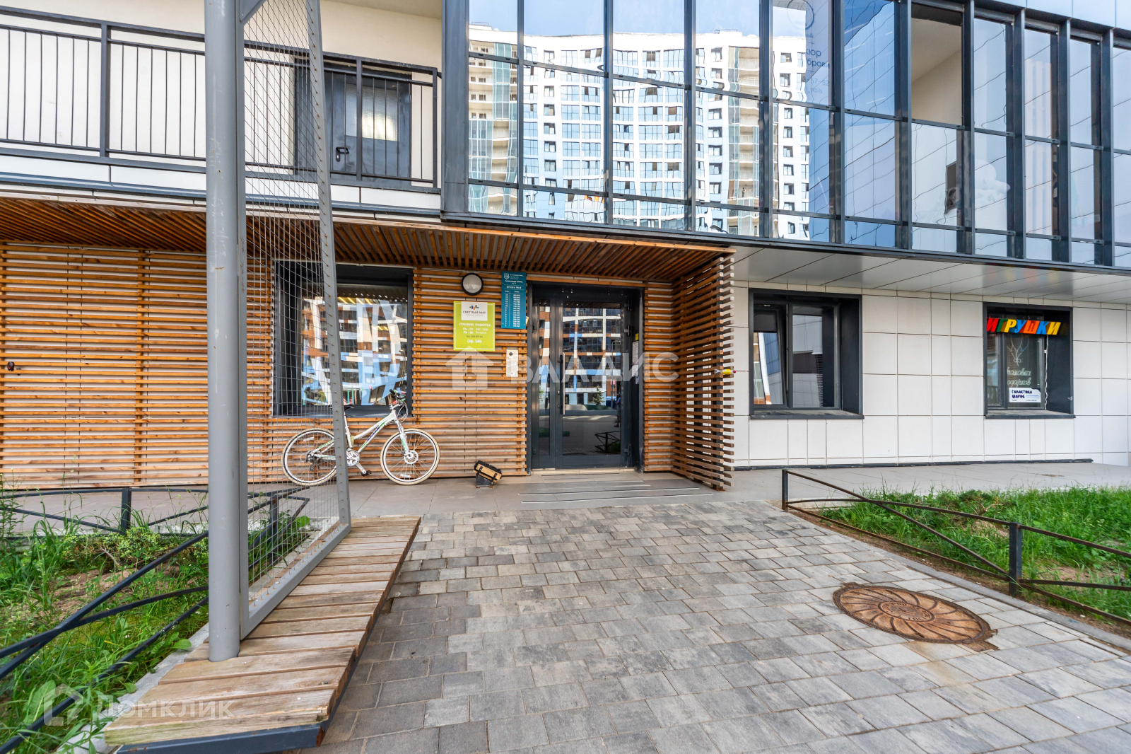 В доме, не создавая шума, находятся: аптека, кафе, круглосуточный магазин, Яндекс-маркет. Инфраструктура действительно современная и очень развита.