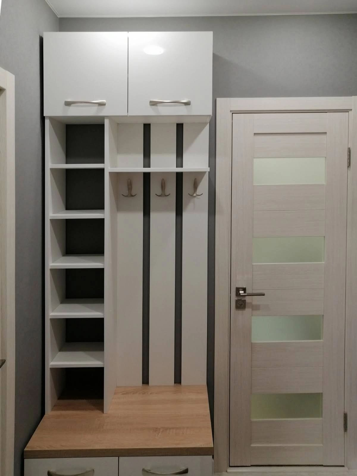 В коридоре открытая небольшая гардеробная .