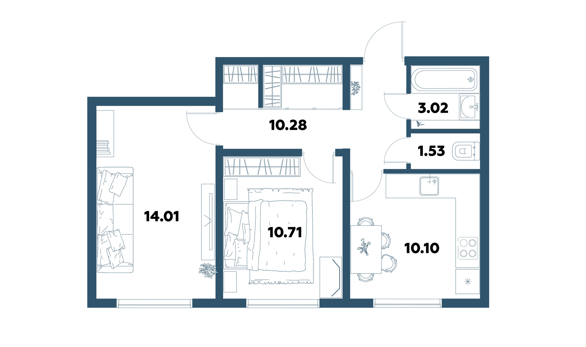 Общая площадь 49.68 м2
