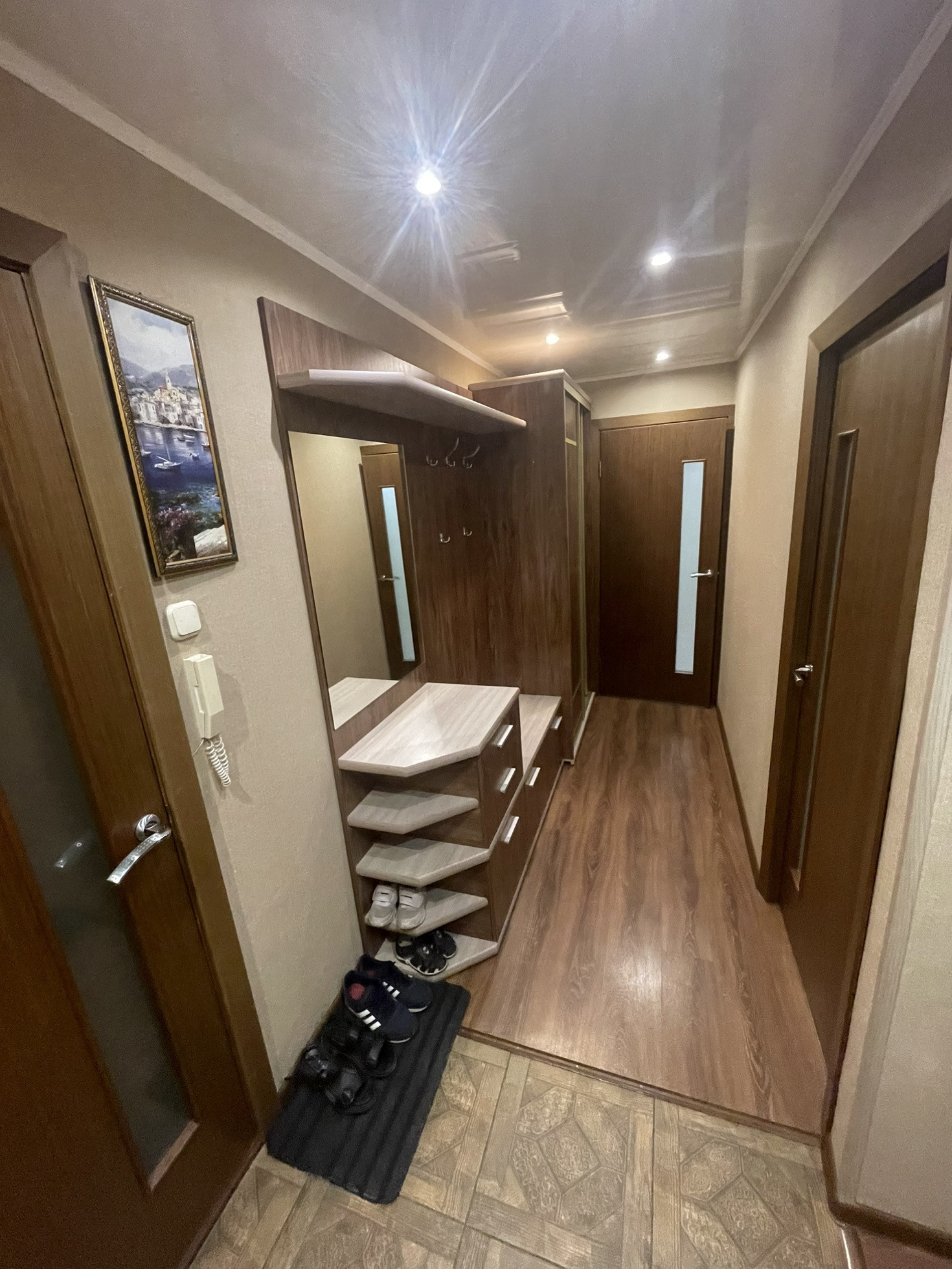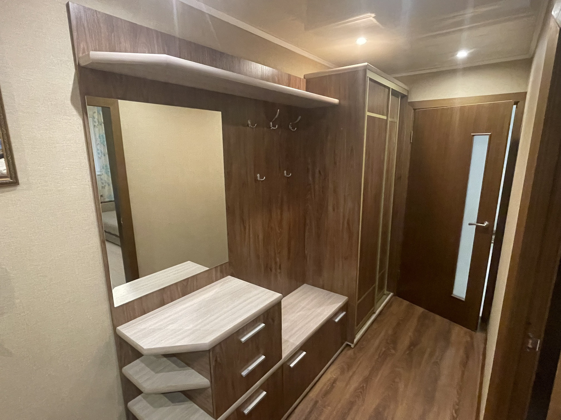 Хорошие соседи. В квартире произведен капитальный ремонт, заменена сантехника. Стеклопакеты во всех комнатах. Газовая плита, мебель на кухне, шкаф купе в комнате, прихожая в коридоре остается в подарок.