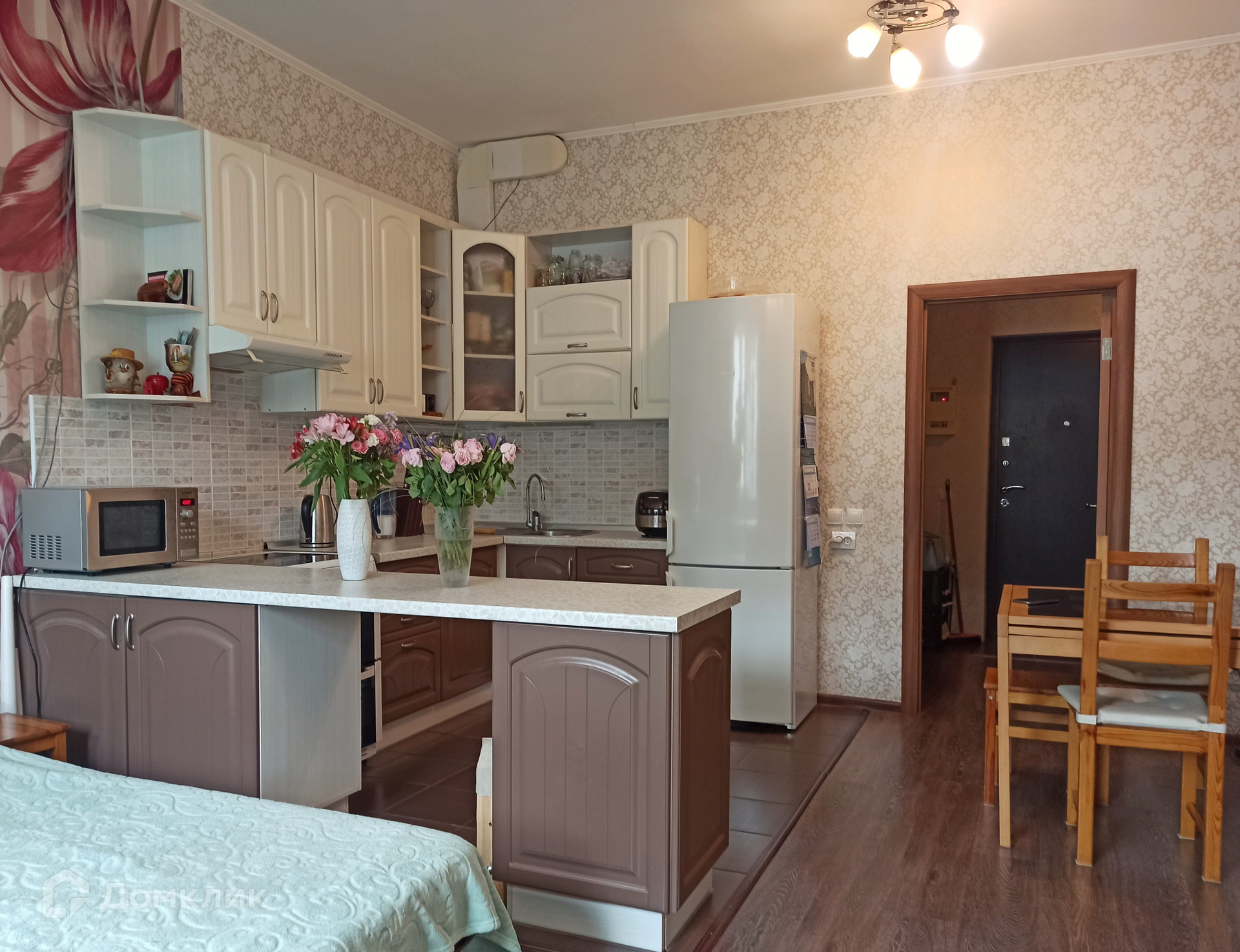 Кухонный гарнитур, встроенный шкаф с зеркалом в коридоре остаются новым собственникам. Остальная мебель по договоренности.