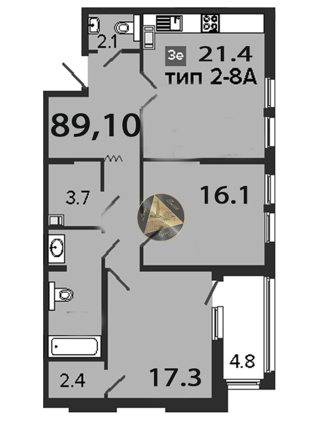 Общая площадь 89.1 м2