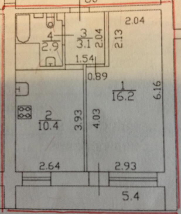 Жилая площадь 16.2 м2