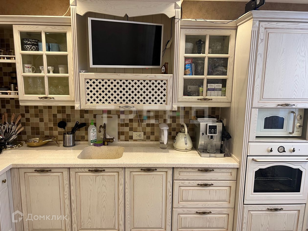 - на кухне добротный кухонный гарнитур, встроенная бытовая техника Gorenje микроволновая печь, духовой шкаф, варочная панель, вытяжка, вместительный холодильник, комфортная обеденная зона, и так же есть телевизор.