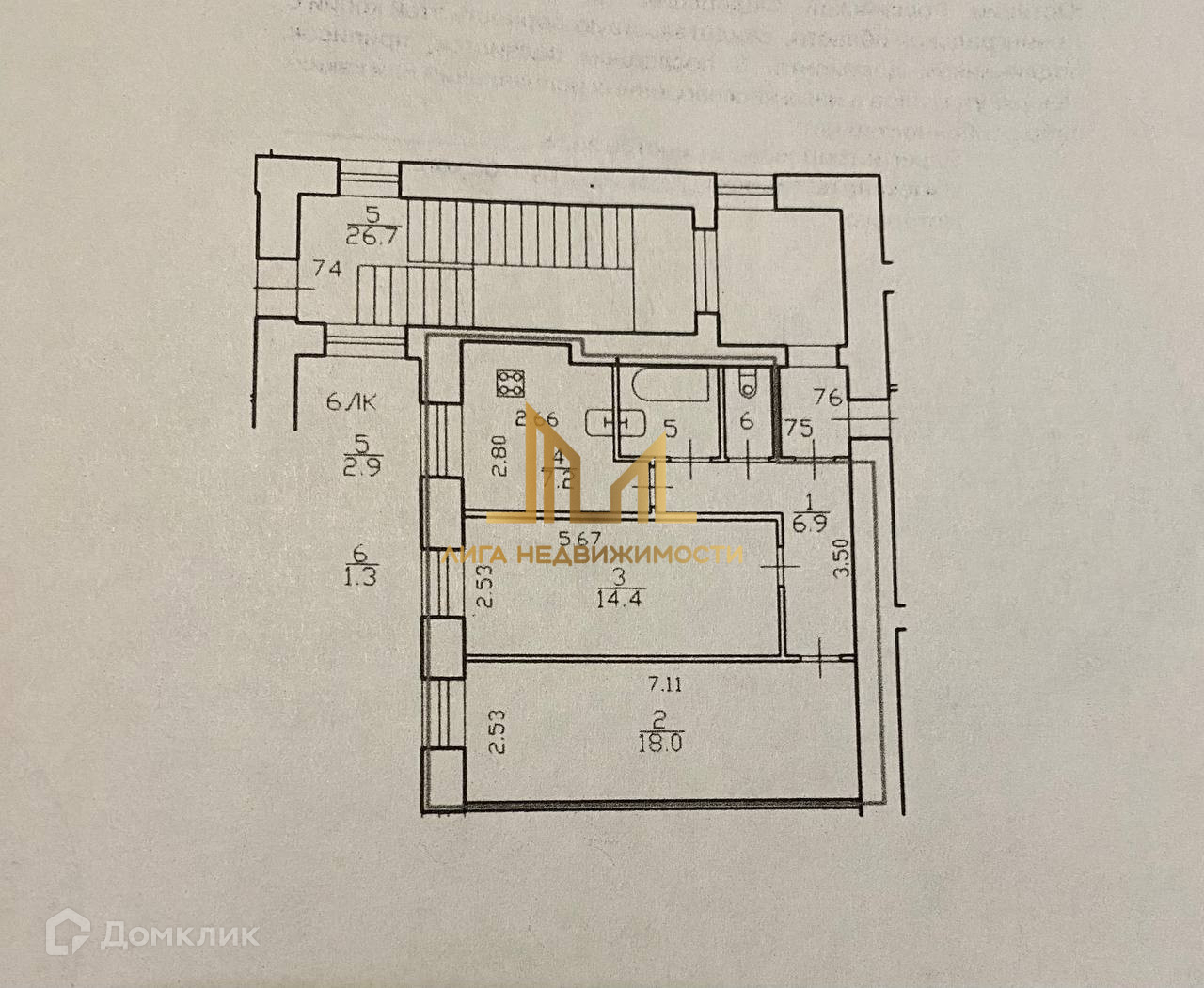 Жилая площадь 32.4 м2