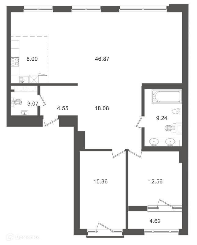 Площадь кухни 54.8 м2